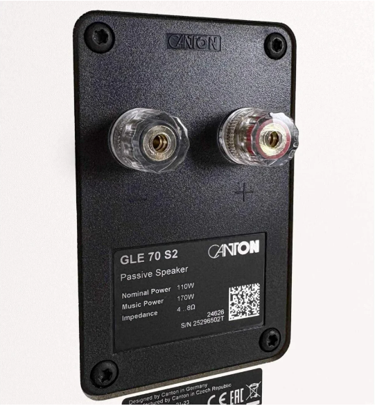 Canton GLE 20 S2 — самая компактная двухполосная полочная АС в серии GLE , мощность 70 Вт, чувствительность 86.5 дБ, импеданс 8 Ом, диапазон частот 42-30000 Гц