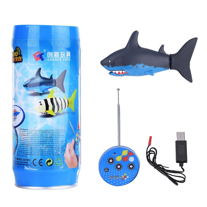 Радиоуправляемая рыбка-акула (синяя, водонепроницаемая в банке) - 3310B-2