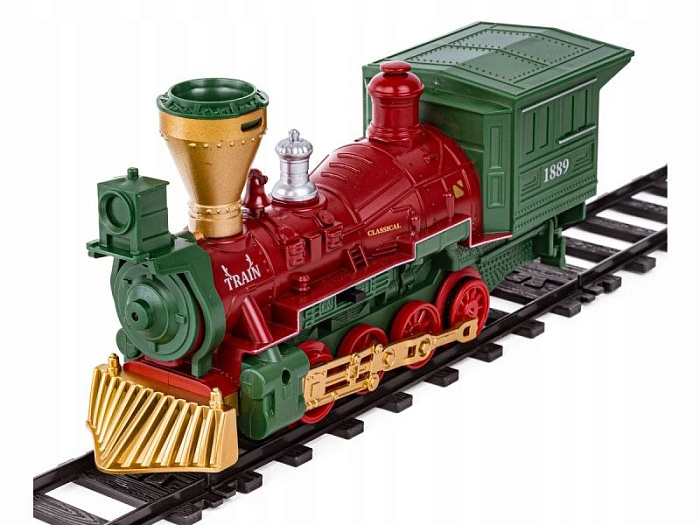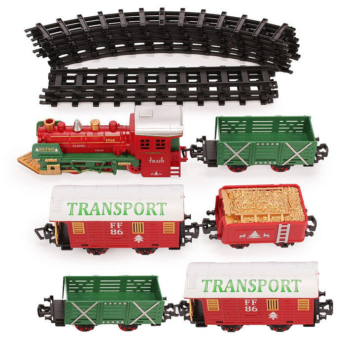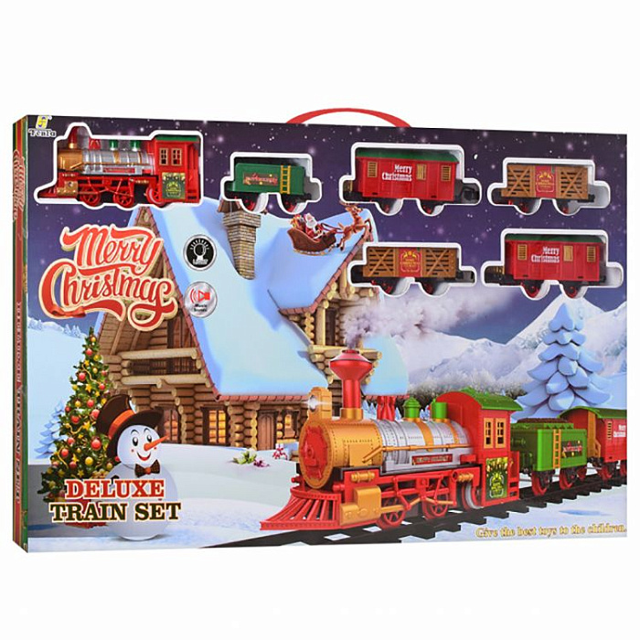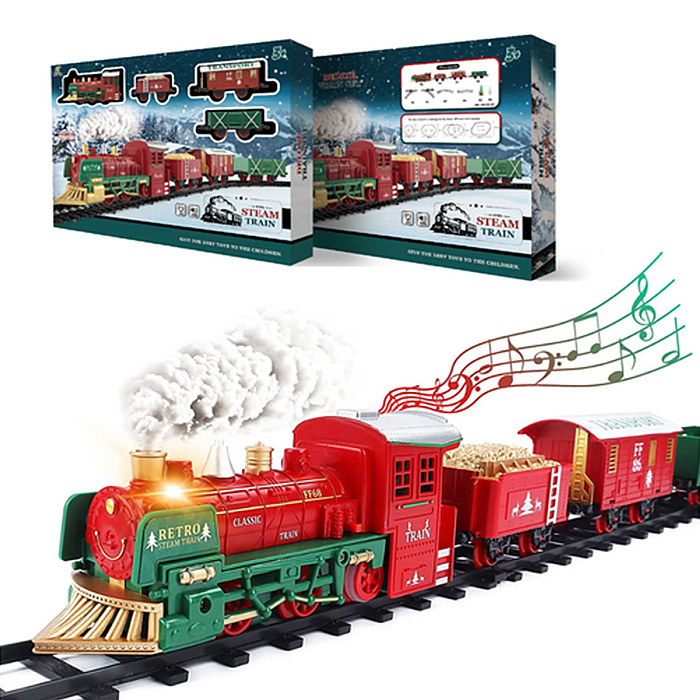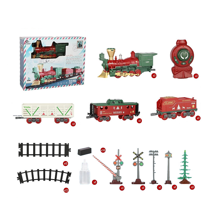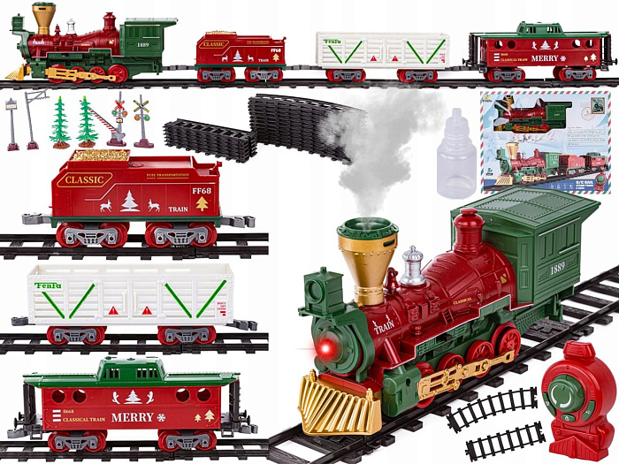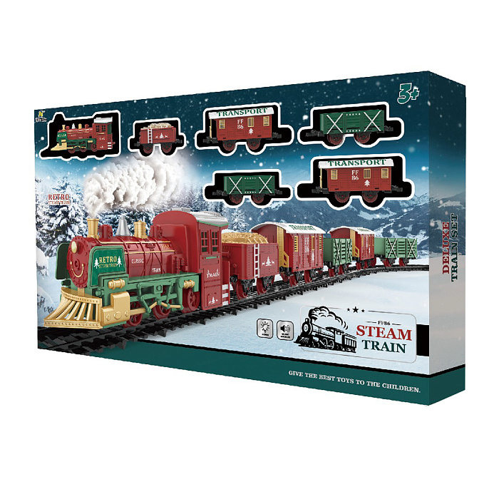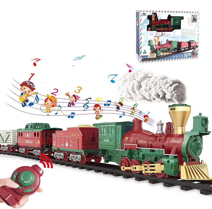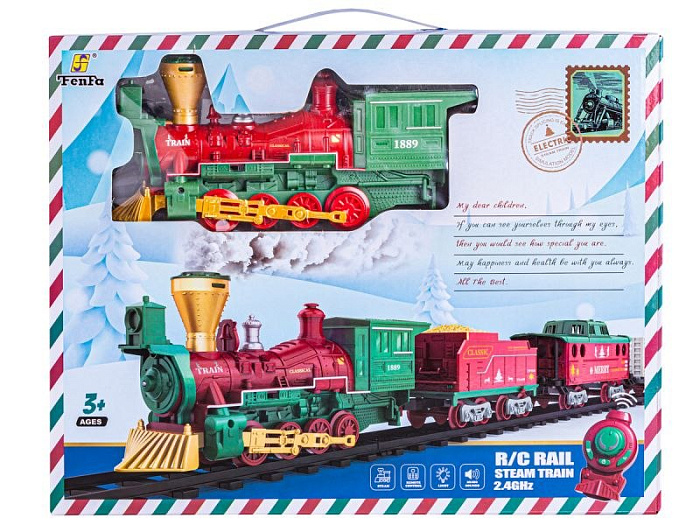 Железная дорога Новогодний поезд Fenfa (3 вагона, пар, пульт, свет, звук) - 1613F