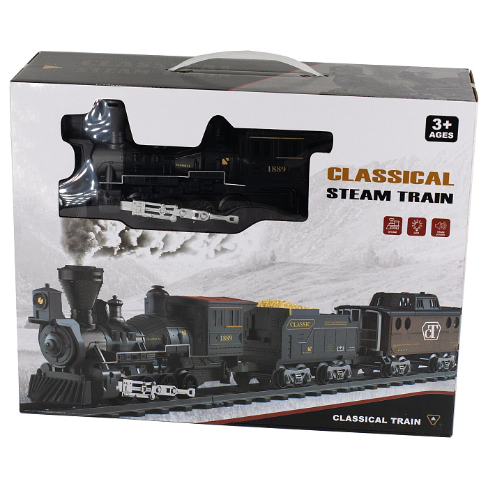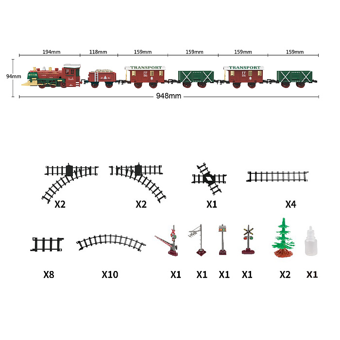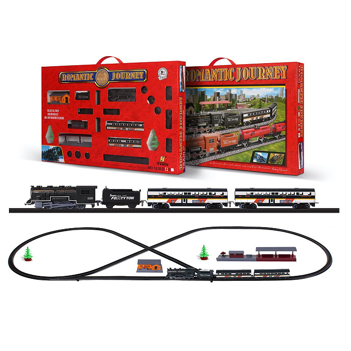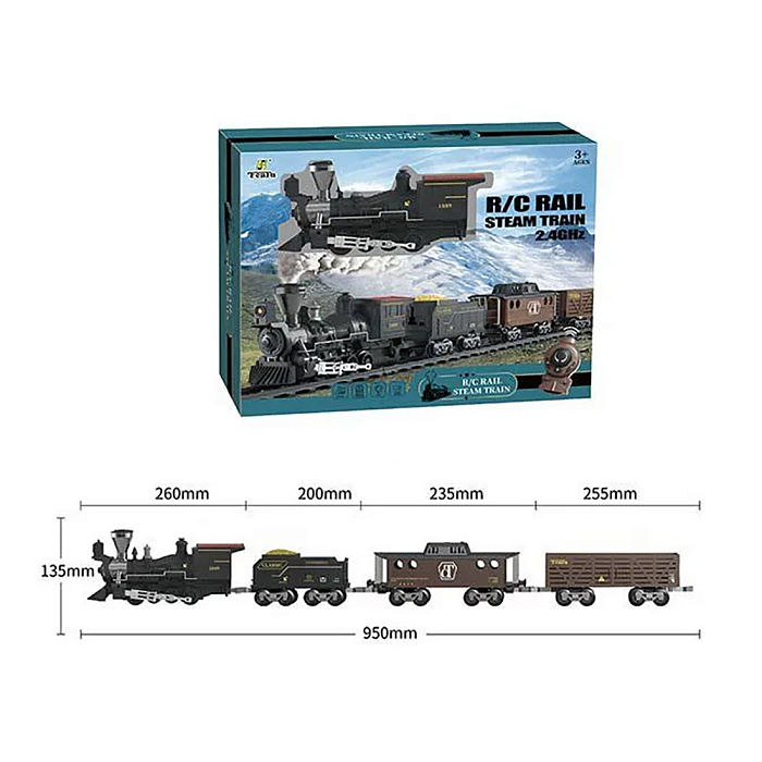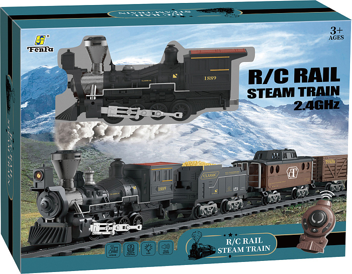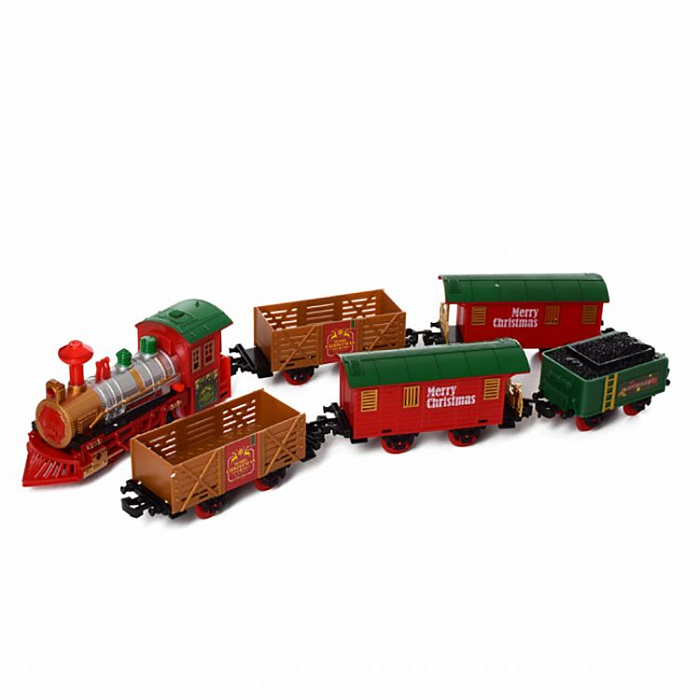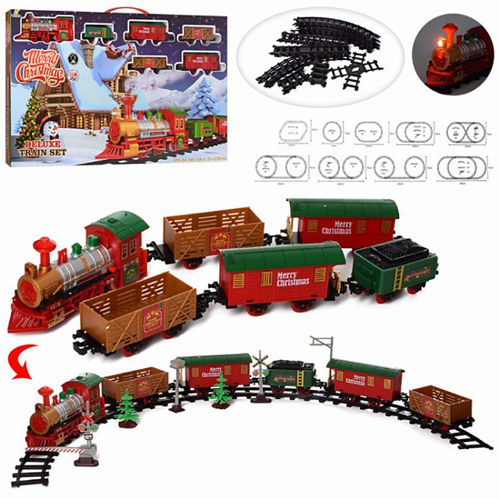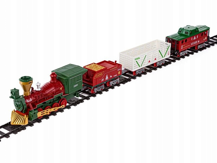 Железная дорога Новогодний поезд Fenfa (3 вагона, пар, пульт, свет, звук) - 1613F