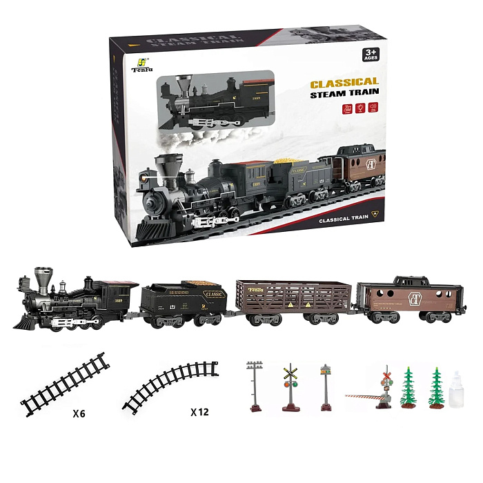 Детская железная дорога Fenfa с паром, свет, звук - 1613A