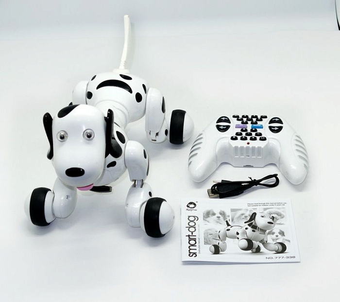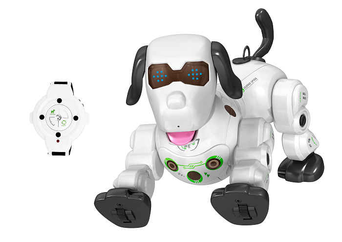 Уникальный радиоуправляемый робот, который имеет реалистичную внешность собаки, может показывать различные эмоции и издавать звуки.