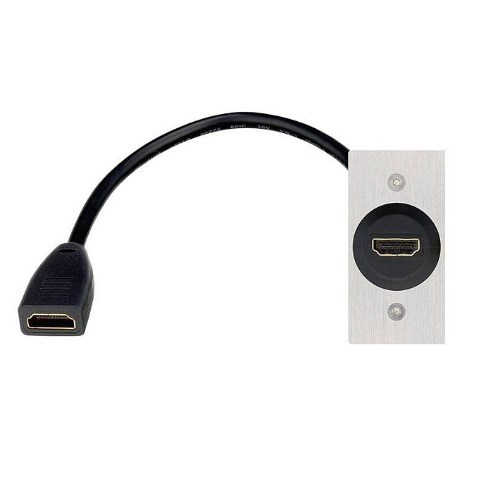 Клемная панель для кабеля под HDMI <-> HDMI; 56x28 мм, цвет - нержавеющая сталь, 1 шт