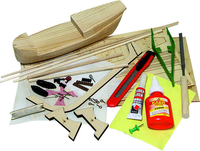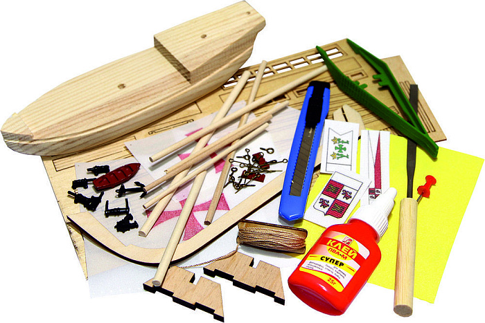 Конструктор из дерева корабль КАРАВЕЛЛА Pinta с инструментами - K10N