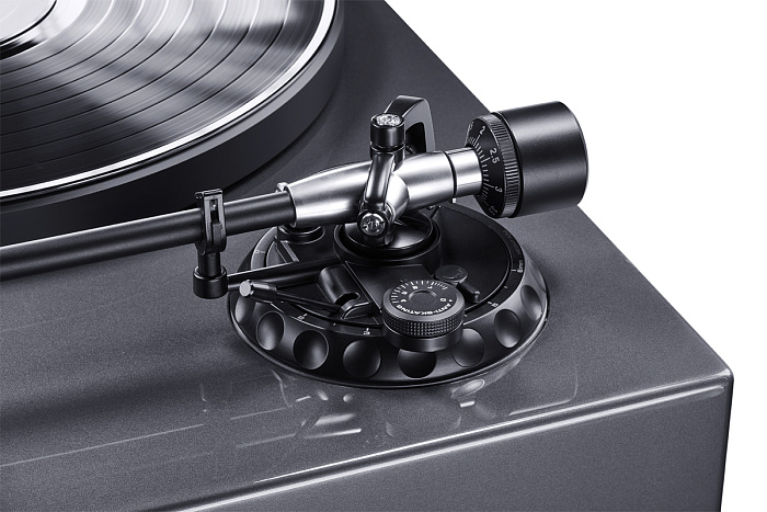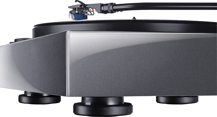 В аппарате применён прямой привод с кварцевой стабилизацией и 10-дюймовый S-образный тонарм с разъёмом SME. Стол выполнен из МДФ, эффективно поглощающего резонансы, и покрыт лаком, а для изготовления диска использован особый полимер, со свойствами, аналогичными свойствам винила.