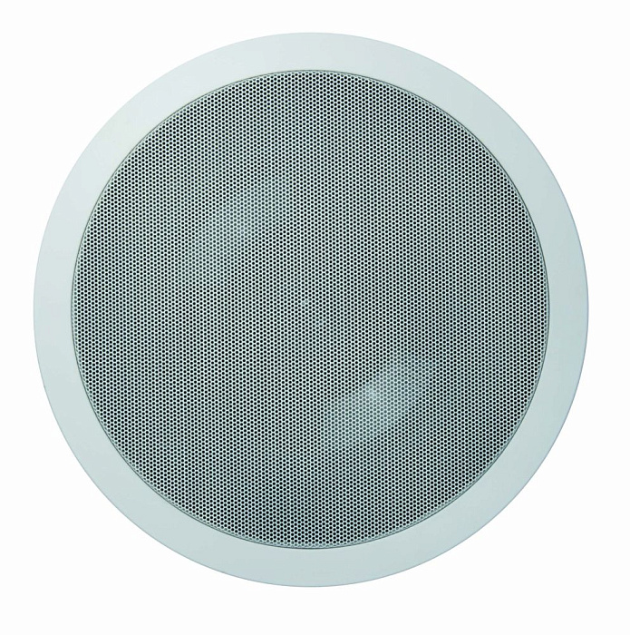 Закрытого типа, двухполосная встраиваемая АС, мощность 60 Вт, чувствительность 89 дБ, импеданс 8 Ом, диапазон частот 38-24000 Гц, монтаж в потолок, цвет белый.
