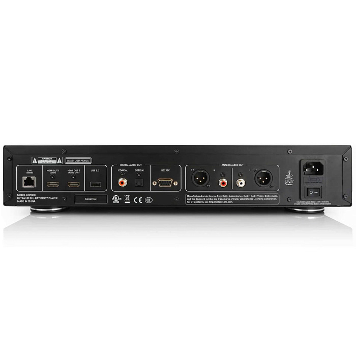 Универсальный Ultra HD Blu-ray проигрыватель, форматы носителей: UHD Blu-ray, 3D, DVD-Video/Audio, AVCHD, SACD, CD, видео форматы: 4K Ultra HD, HDR10+, Dolby Vision, масштабирование: до 4K 3840 x 2160, аудио ЦАП: ESS Sabre 9038PRO, 9028PRO, потоковые сервисы: DLNA, SMB, и др., аудио-видео входы: 1 х USB-A, 1 х Ethernet (RJ45), аудио-видео выходы: 1 х RCA, 1 х XLR, 7.1 RCA, 2 х HDMI, 1 х SPDiF (RCA), 1 x TosLink, 1 х USB-B, габариты: 445 x 321 x 133 мм, вес: 15.5 кг.