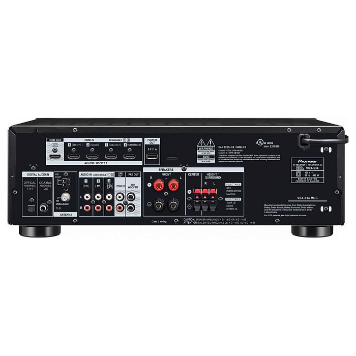 Pioneer VSX 935 M2 - 7.2-канальный ресивер мощностью 7 x 165 Вт с 6 разъемами HDMI (4K), Dolby Atmos, DTS:X, виртуализатором верхних громкоговорителей Dolby Atmos, с поддержкой Sonos, Zone 2, AirPlay 2, Bluetooth и USB.