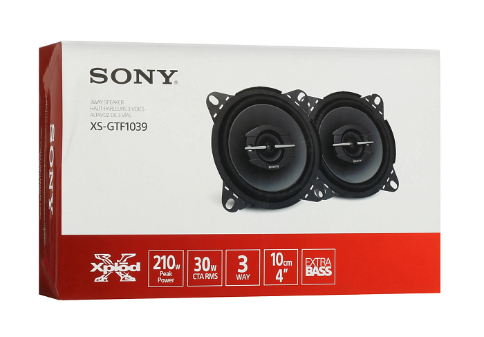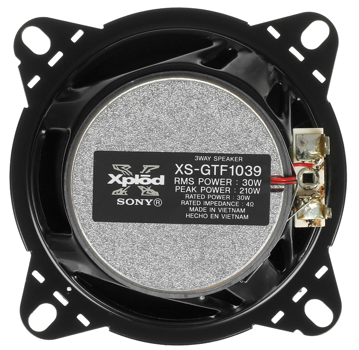 Автоакустика коаксиальная двухконусная 10 см (4 дюйма), Номинальная мощность 30 Вт. Пиковая мощность 210 Вт. Диапазон частот 45–23 000 Гц.