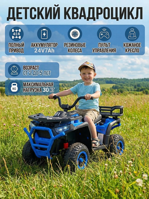 Детский электромобиль квадроцикл X-Robust (синий, 24V, 4WD, пульт, EVA) - XMX651-24V-4WD-BLUE с полным приводом, пультом управления и аккумулятором 24 вольта.