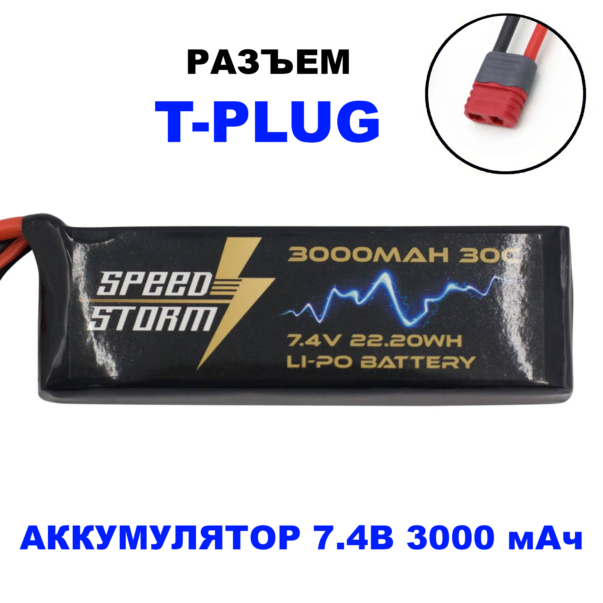 Аккумулятор Speed Storm Li-Po 7.4V 30C 3000 mAh разъем T-plug (Deans) - SS-2S3000-30-D для игрушек и моделей на радиоуправлении.
