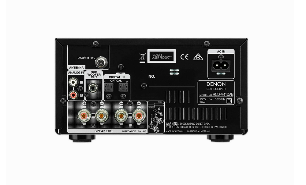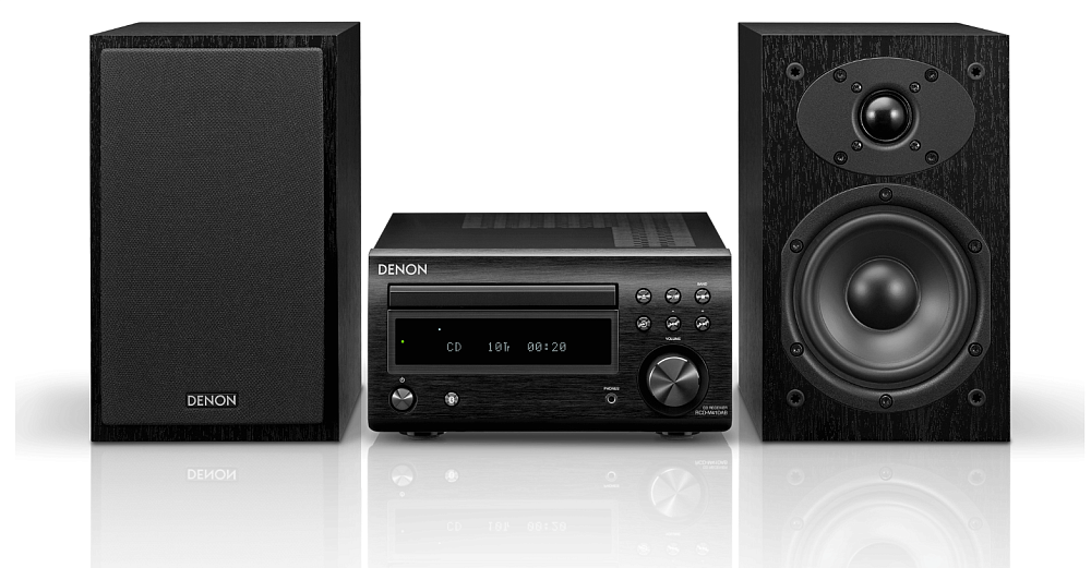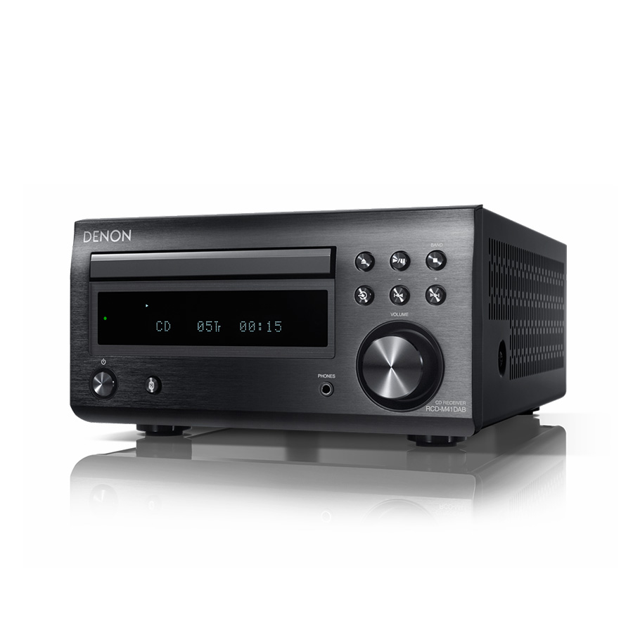 CD-ресивер Denon RCD-M41 DAB построен на базе очень удачной модели RCD-M40, которая была весьма популярна у меломанов и получила много хороших отзывов в специализированной прессе. Разумно решив сохранить все основные достоинства прежней версии, инженеры компании обновили дизайн и схемотехнику Denon RCD-M41 DAB, а также немного изменили ее функциональные возможности. В результате получился простой и надежный в эксплуатации аппарат с надежным звуком, к которому, для создания полноценной стереосистемы, нужно добавить только пару колонок. Внешний вид устройства приближен к моделям высококлассной линейки NE этой фирмы, благодаря чему оно выглядит дороже своей стоимости. CD-ресивер оснащен новым аналоговым усилителем, в котором была значительно сокращена длина цепей передачи аудиосигнала, а также применена схема тройного понижения шумов TNRD и повышена величина выходного тока. В результате звучание Denon RCD-M41 DAB стало более открытым и ударным, и система теперь легко справляется даже с компактными напольными колонками. Основным источником сигнала в системе по-прежнему является CD-привод, узкий загрузочный лоток которого находится над крупным и информативным двухстрочным дисплеем. Транспорт оптимизирован для воспроизведения дисков CD-Audio (имеется также возможность прослушивания CD-R/RW с файлами MP3 и WAV), что обеспечивает точное звучание композиций. Еще одним встроенным источником музыки в Denon RCD-M41 DAB является качественный DAB/DAB+/FM-тюнер с системой автонастройки и памятью на 30 станций. Одним из нововведений в Denon RCD-M41 DAB стал Bluetooth (который заменил USB-порт), благодаря чему звуковой сигнал с портативных устройств на CD-ресивер можно передавать буквально в одно касание. Аппарат оснащен двумя оптическими входами, благодаря чему его удобной подключить одновременно к внешнему и плееру и, например, телевизору, для качественного воспроизведения звукового сопровождения кинофильмов и трансляций. Также в наличии и один линейный вход. Для подключения колонок Denon RCD-M41 DAB предназначены универсальное винтовые клеммы, обеспечивающие надежное соединение и минимальные потери полезного сигнала. Стоит также отметить наличие в системе отдельного встроенного усилителя для наушников.