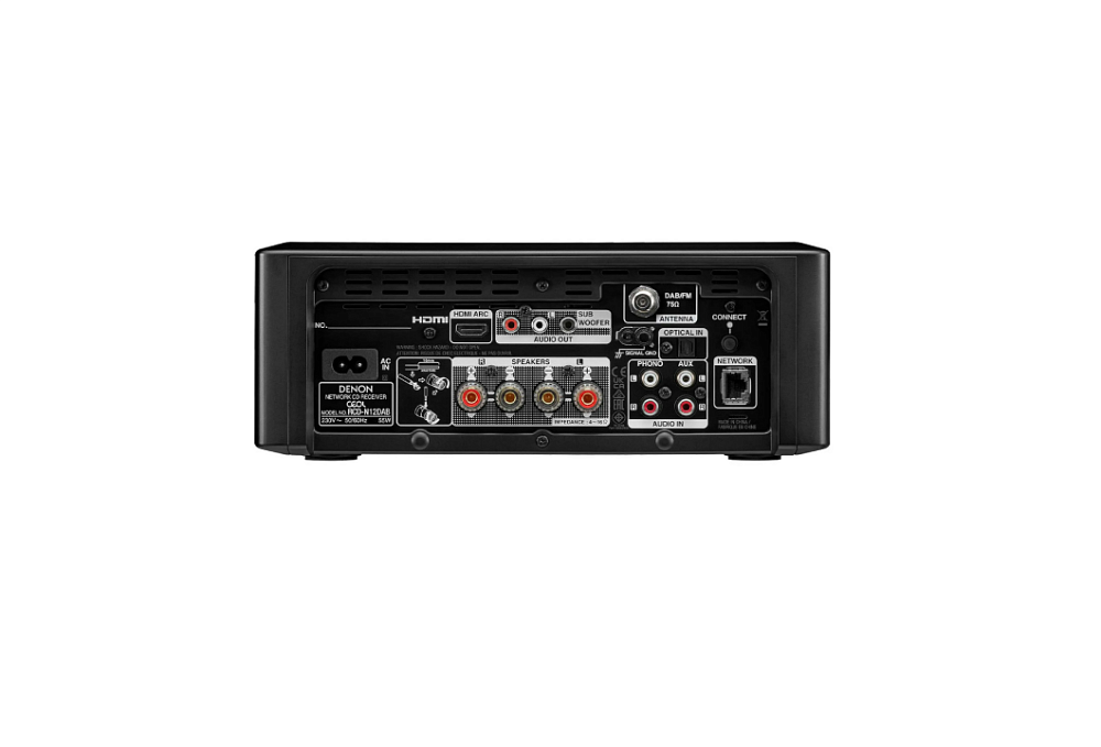 Denon RCD N12DAB оснащен большим количеством встроенных источников сигнала. Здесь имеются CD-плеер с быстрой загрузкой диска и практически бесшумно работающим механизмом, а также очень качественный FM/AM тюнер. Однако это является лишь частью списка возможностей данной модели, большинство из которых связаны с сетевым функционалом Denon RCD N12DAB. Здесь предусмотрено воспроизведение музыкальных файлов как с различных устройств (подключение к сети по Ethernet или Wi-Fi), а также пользование различными online-сервисами. Denon RCD N12DAB можно включить в беспроводную фирменную систему мультирум HEOS, а также соединять напрямую с устройствами, поддерживающими технологию AirPlay/AirPlay 2. Вход HDMI поддерживает возвратный аудиоканал ARC, что удобно при подключении к телевизору. На борту имеется MM-фонокорректор. Также в системе предусмотрен Bluetooth и имеется USB-вход для подключения портативных накопителей.