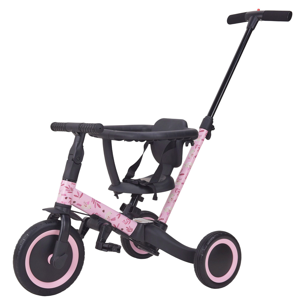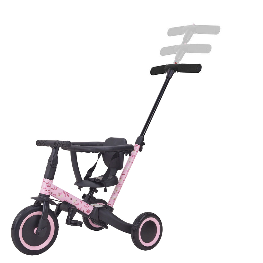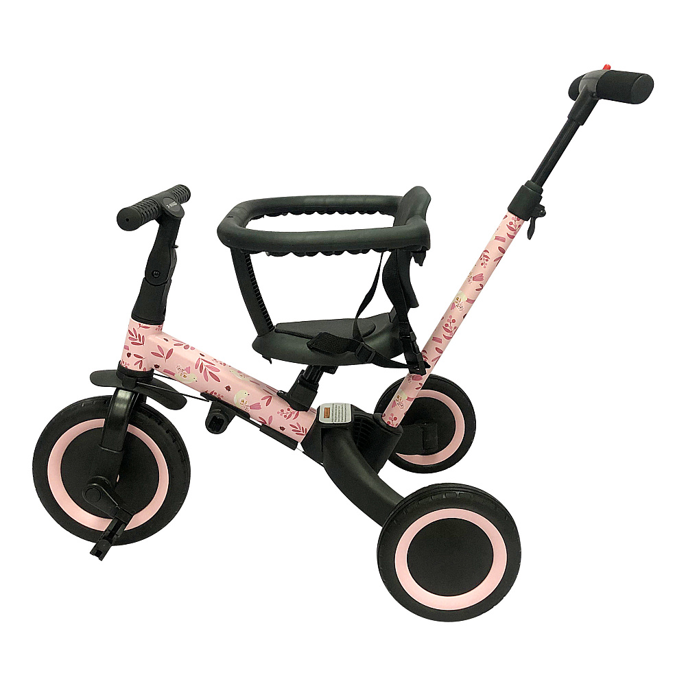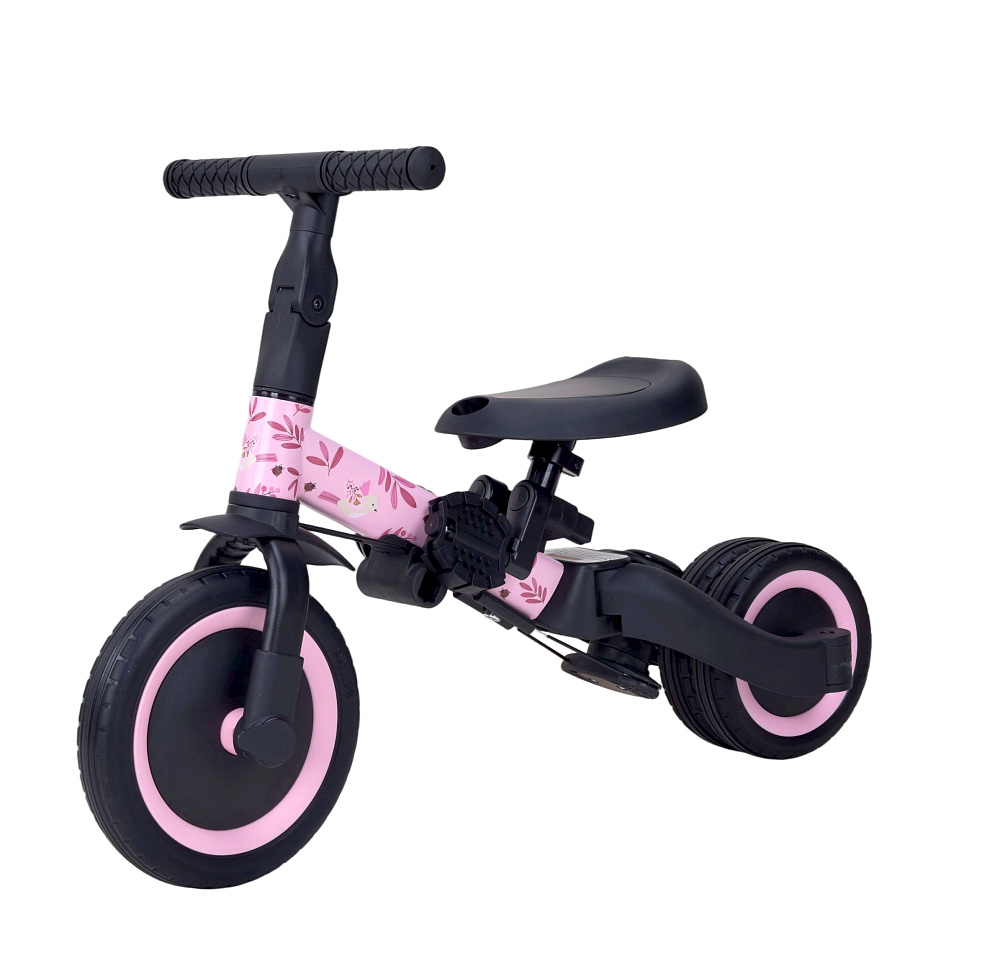 Детский беговел-велосипед 6в1 с родительской ручкой, розовый с рисунком - TR008-PINK-PAINT - это обновленная модель беговела TR007 с боковой поддержкой сиденья. TR008 - это удобный, универсальный и надежный беговел для детей от 1 до 5 лет, с возможностью становиться велосипедом!