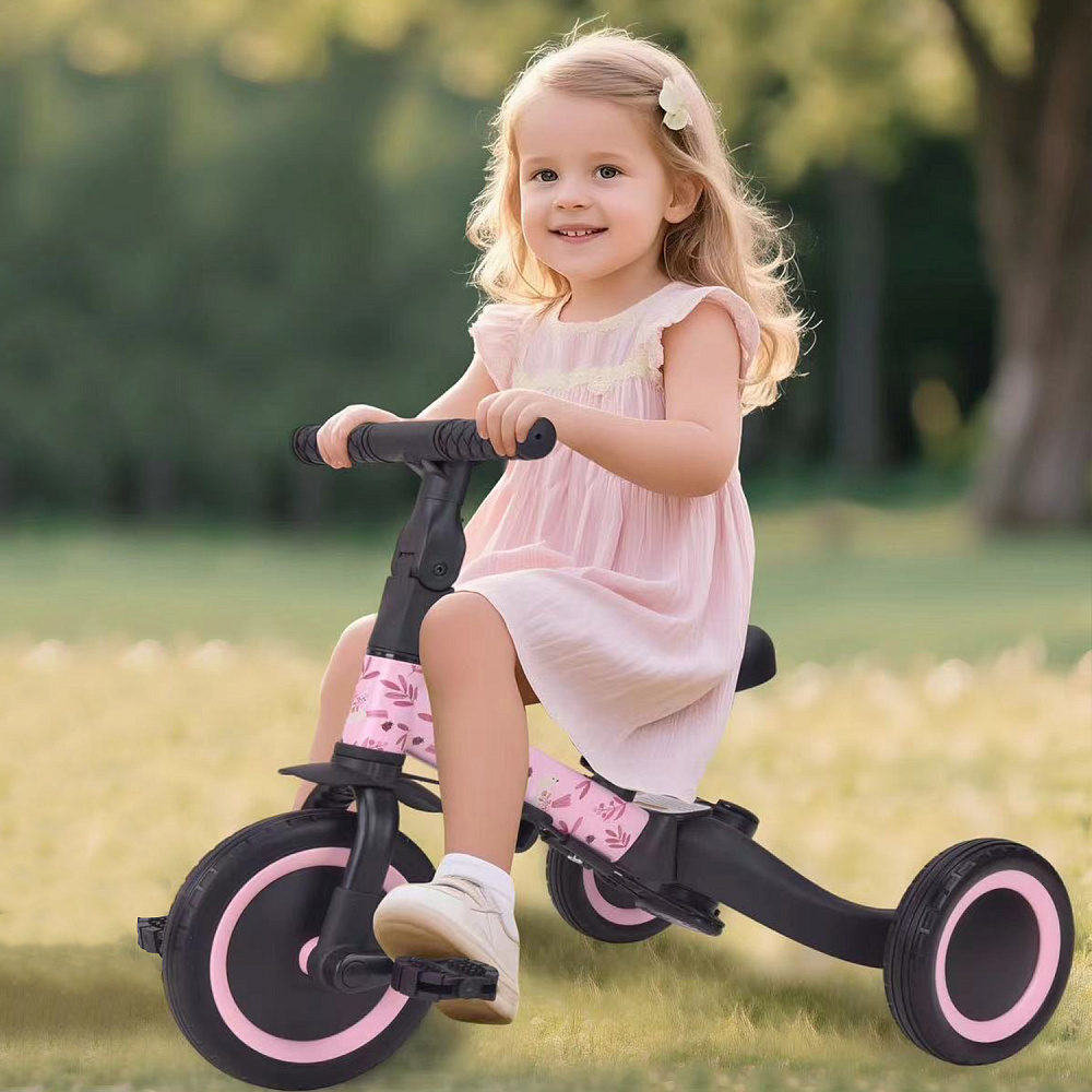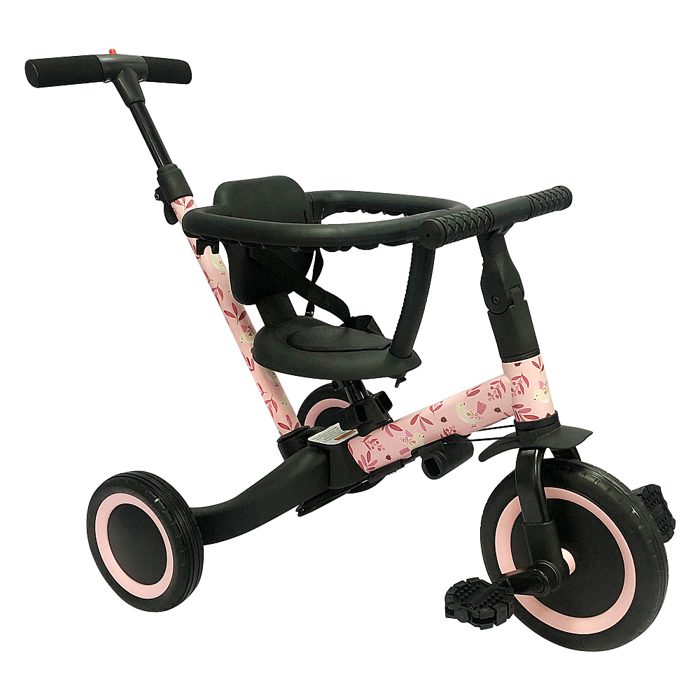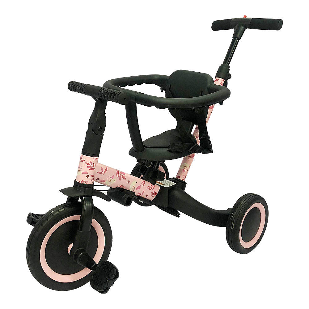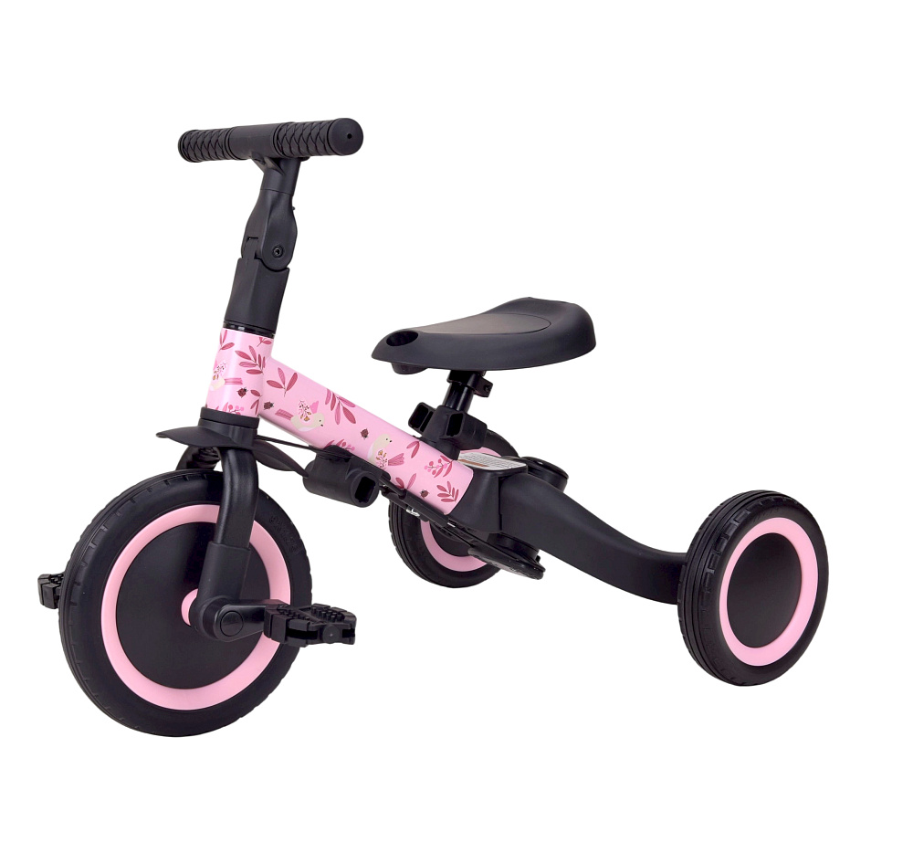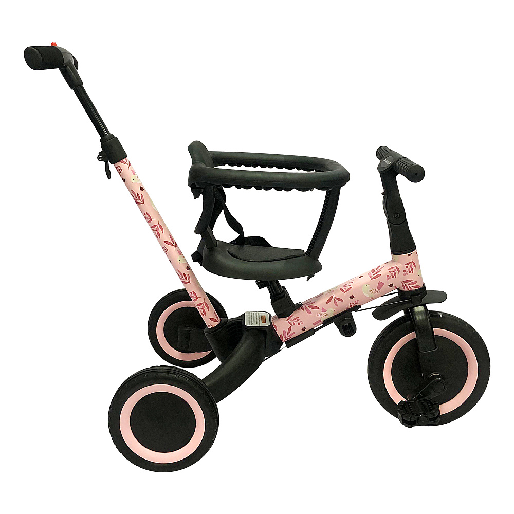 Детский беговел-велосипед 6в1 с родительской ручкой, розовый с рисунком - TR008-PINK-PAINT - это обновленная модель беговела TR007 с боковой поддержкой сиденья. TR008 - это удобный, универсальный и надежный беговел для детей от 1 до 5 лет, с возможностью становиться велосипедом!