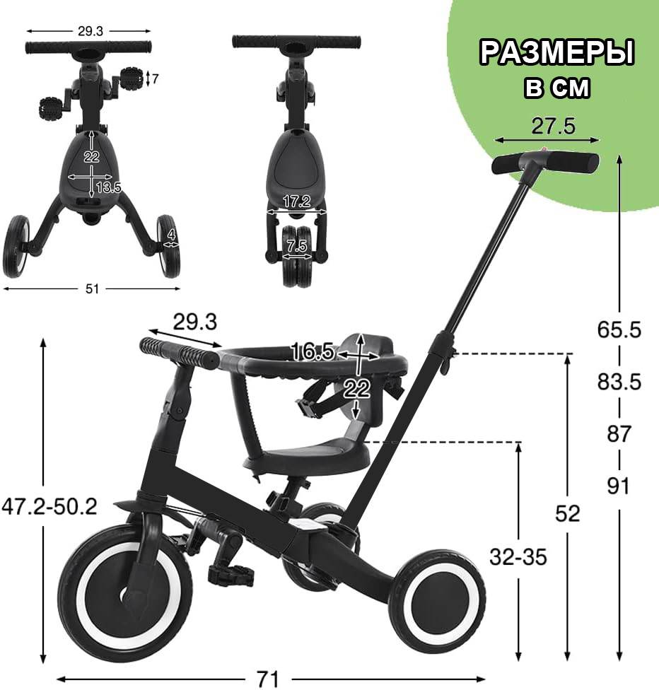 - Сиденье подходит для мальчиков и девочек и регулируется по высоте.