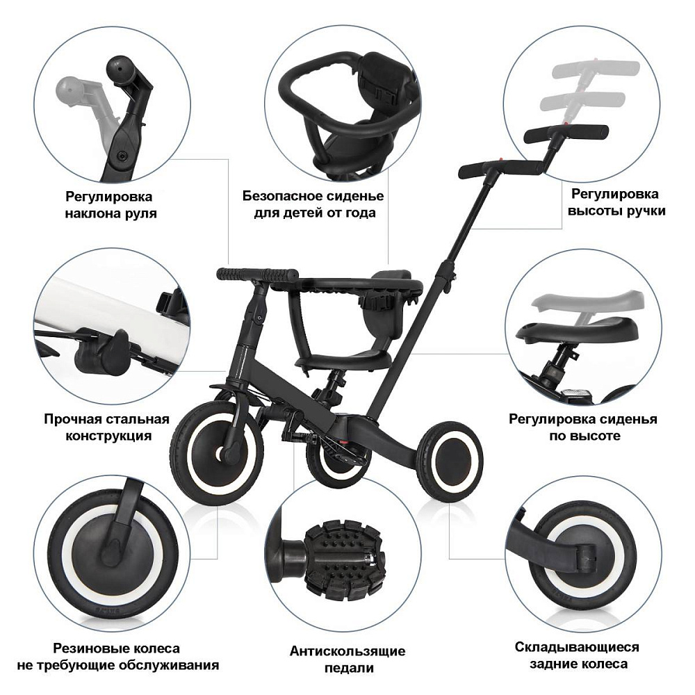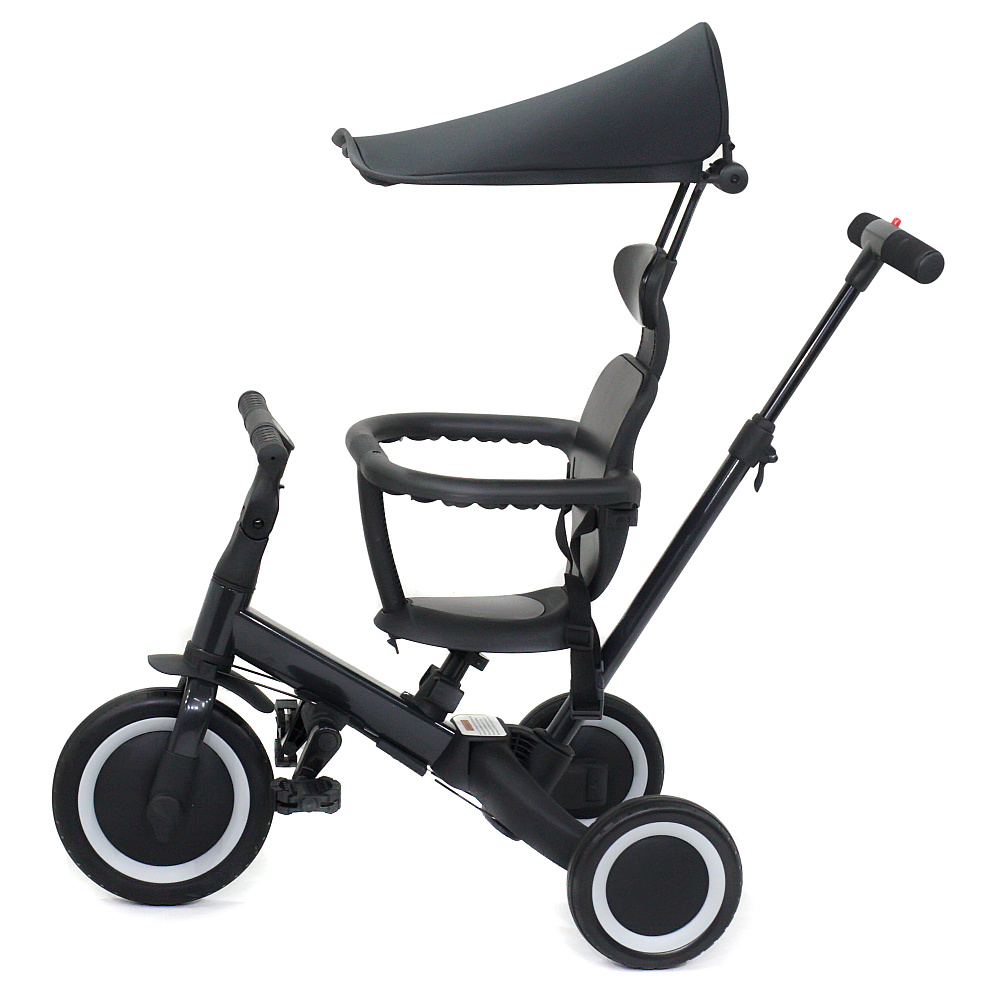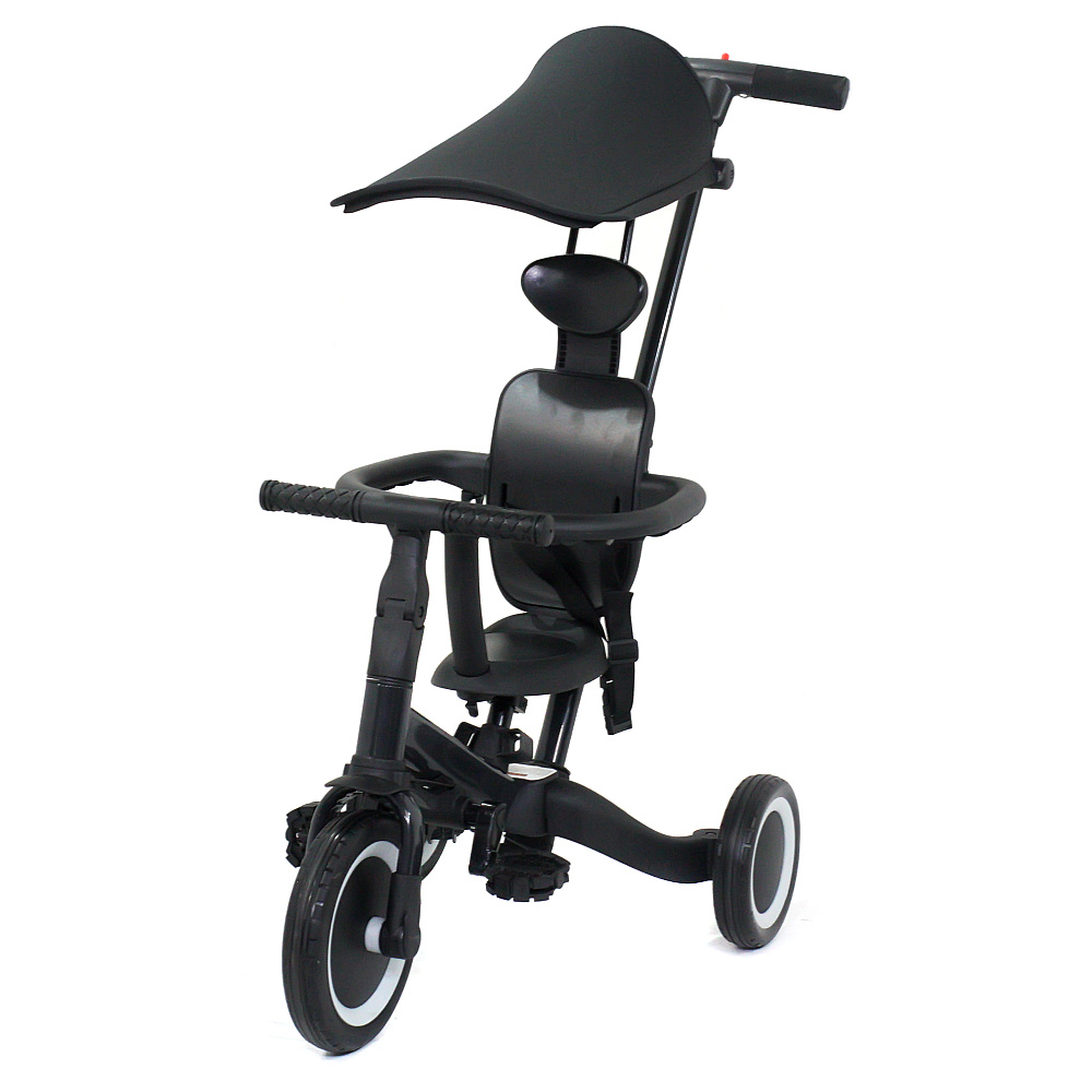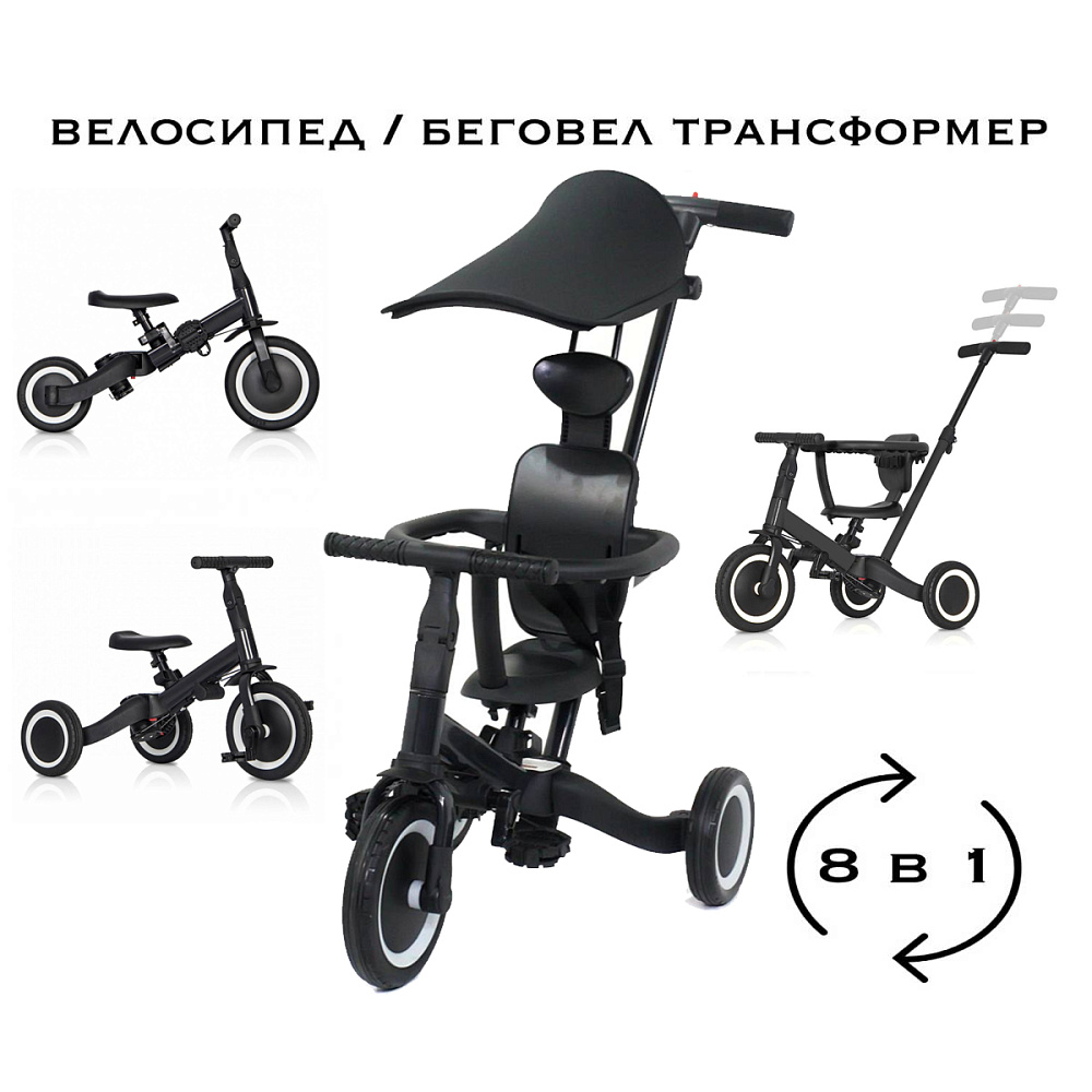 Детский беговел-велосипед 8в1 с крышей и ручкой, черный - TR008C-BLACK - это обновленная модель беговела TR008 с боковой поддержкой сиденья и защитным козырьком от солнца. TR008C - это удобный, универсальный и надежный беговел для детей от 1 до 5 лет, с возможностью становиться велосипедом!