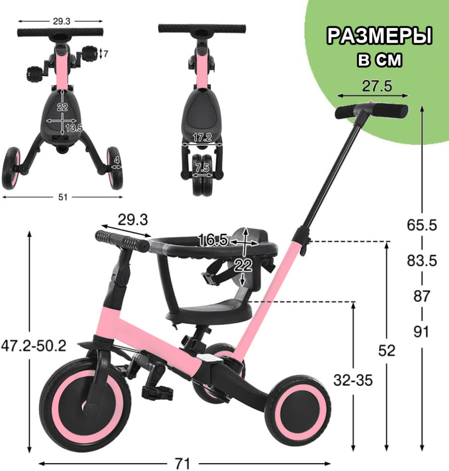 Детский беговел-велосипед 8в1 с крышей и ручкой, розовый - TR008C-PINK - это обновленная модель беговела TR008 с боковой поддержкой сиденья и защитным козырьком от солнца. TR008C - это удобный, универсальный и надежный беговел для детей от 1 до 5 лет, с возможностью становиться велосипедом!