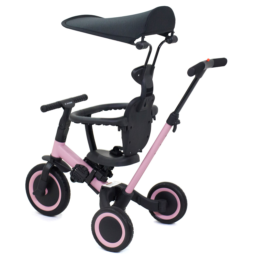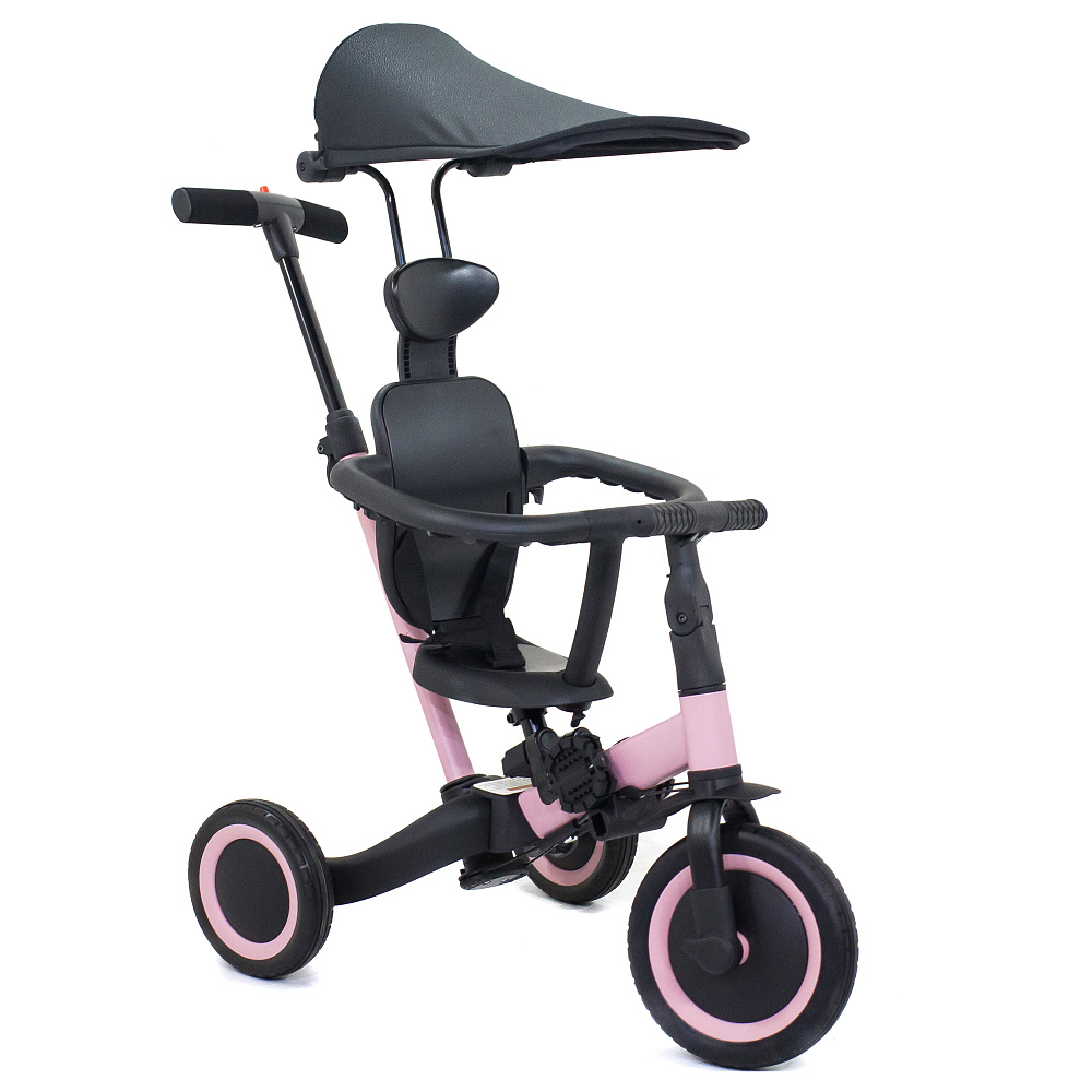 Детский беговел-велосипед 8в1 с крышей и ручкой, розовый - TR008C-PINK