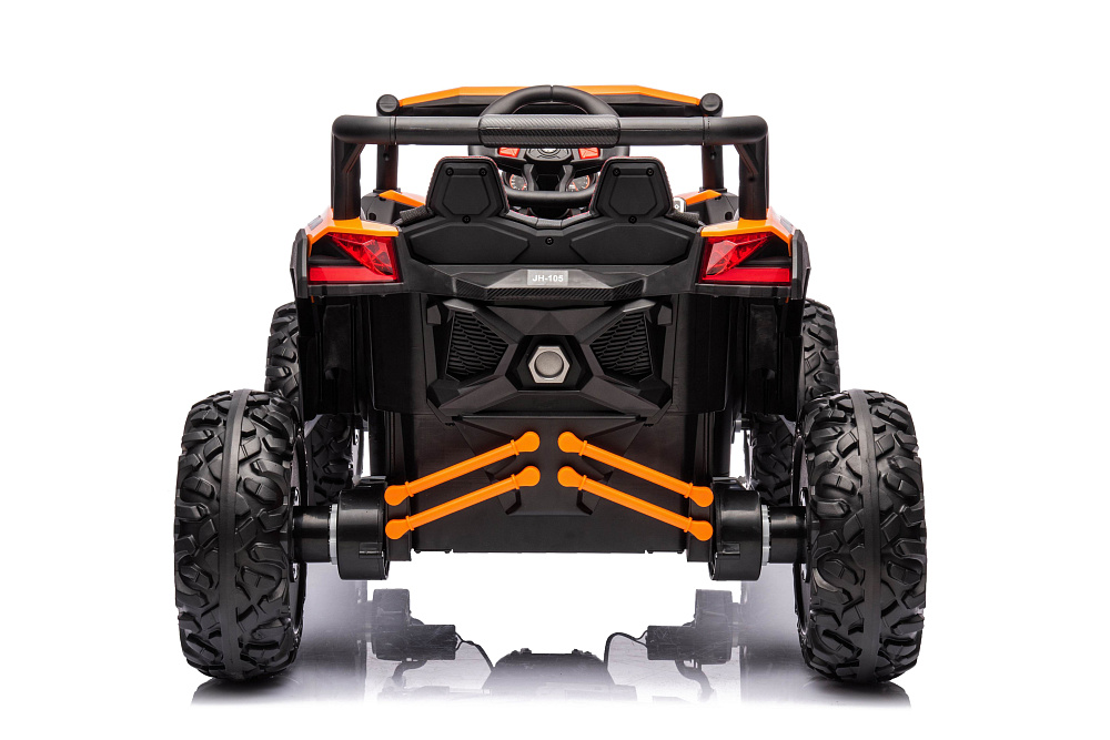 Детский электромобиль Багги (полный привод, EVA, 24V) - JH105-ORANGE - это абсолютный лидер на рынке детских машинок в категории багги. Модель на столько необычная, мощная и стильная. Ваш юный водитель будет в абсолютном восторге от такого внедорожника! Buggy JH105 современная модификация оснащенная мощным 24 вольтовым аккумулятором. На багги установлены 4 двигателя по 200 ватт каждый, благодаря которым модель может с лёгкостью будут преодолевать дорожные неровности и катать малыша с ветерком. Особенностью модели является более высокая скорость движения, модель разгоняется примерно до 9 км/ч и особенно будет интересна уж опытным в вождении малышам, или смелым и активным водителям. Buggy JH105 имеет полную амортизацию подвески, высокий клиренс и все необходимое для комфортной езды. Так же в модели продумана кучка для транспортировки реализованная в виде ленты. Купив такой электромобиль Вы и Ваш малыш получите неописуемое удовольствие, и абсолютно точно Buggy JH105 будет радовать Вас не один год!
