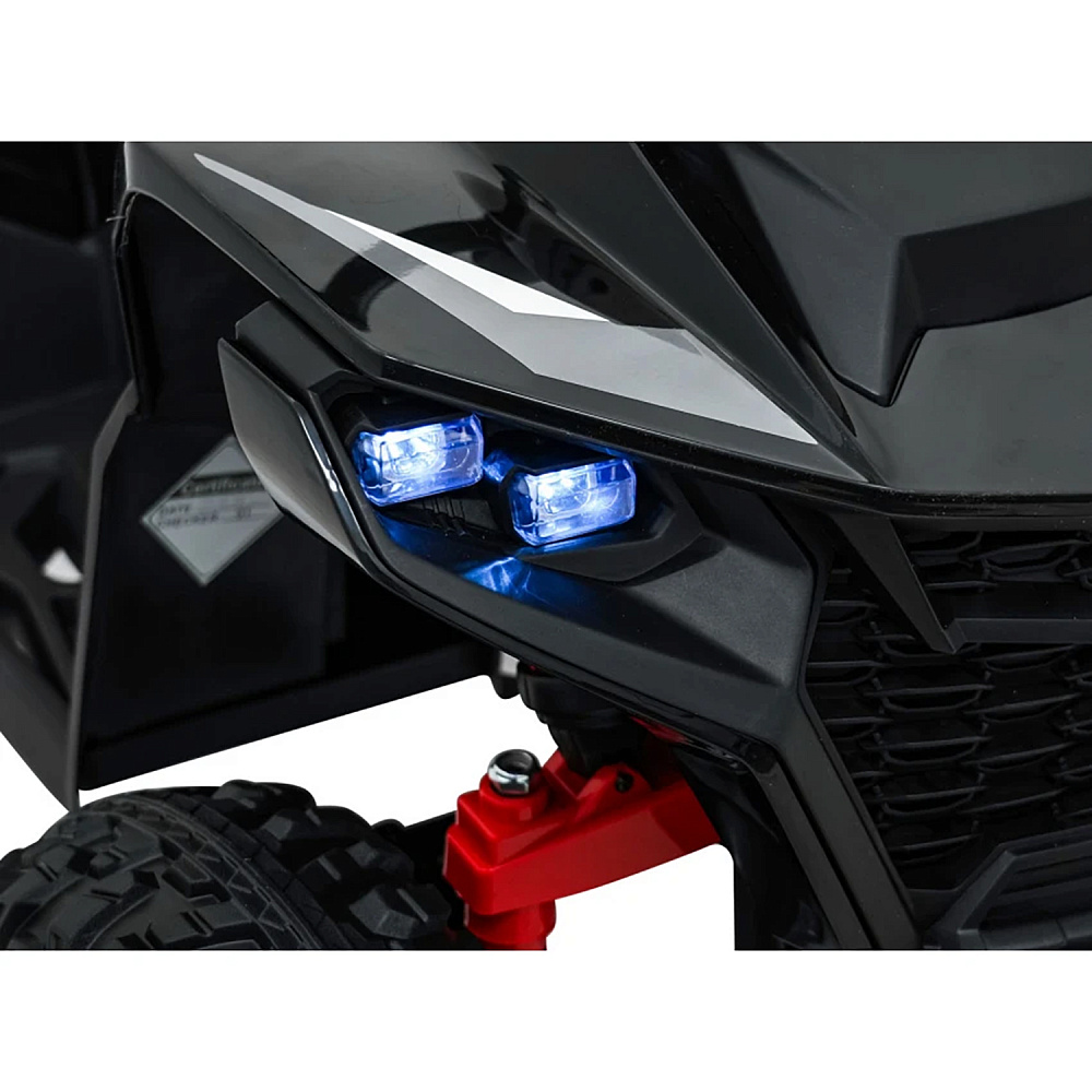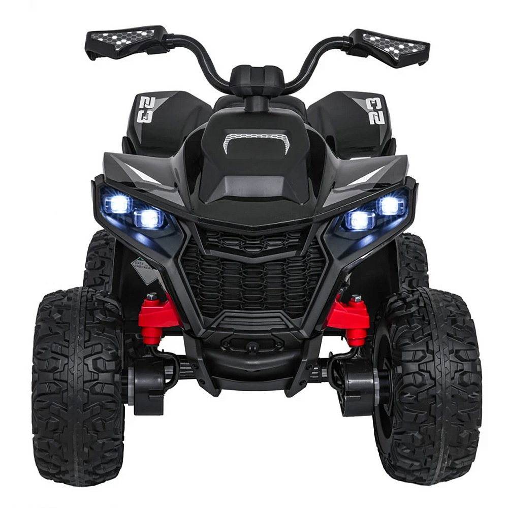 Детский электромобиль квадроцикл Outlander (черный, 24V, 4WD, пульт, EVA) - XMX652-24V-4WD-BLACK привлекает внимание не только своим внешним видом, но и отличной комплектацией. Слегка агрессивный, грубый, с классическими элементами дизайн делает эту модель похожей на взрослый квадроцикл, тем самым выделяя его среди прочих. Именно поэтому данная модель так нравится детям. К тому же, электровездеход имеет самые современные опции. Два мощных мотора позволяют плавно разогнать машину до 7 км/ч. А удобное сиденье, широкие платформы для ног, "мягкий" руль, прочные резиновые колеса сделают поездку максимально комфортной. Квадроцикл предназначен для детей от 2-х до 6 лет, и способен увезти на себе вес до 50 кг. С управлением ребенок разберется быстро: нажатием кнопки запускается двигатель, нажатием педали приводится в движение. Имеются две скорости движения. Предусмотрены звуковые и световые эффекты: звук мотора, музыкальное сопровождение, подключение устройств через Bluetooth, возможность подключения MP3, USB, горят передние фары. Можно не сомневаться, ребенок обязательно оценит красоту и функциональность электроквадроцикла, который будет радовать своего обладателя ни один год. В комплекте есть дистанционный пульт управления.