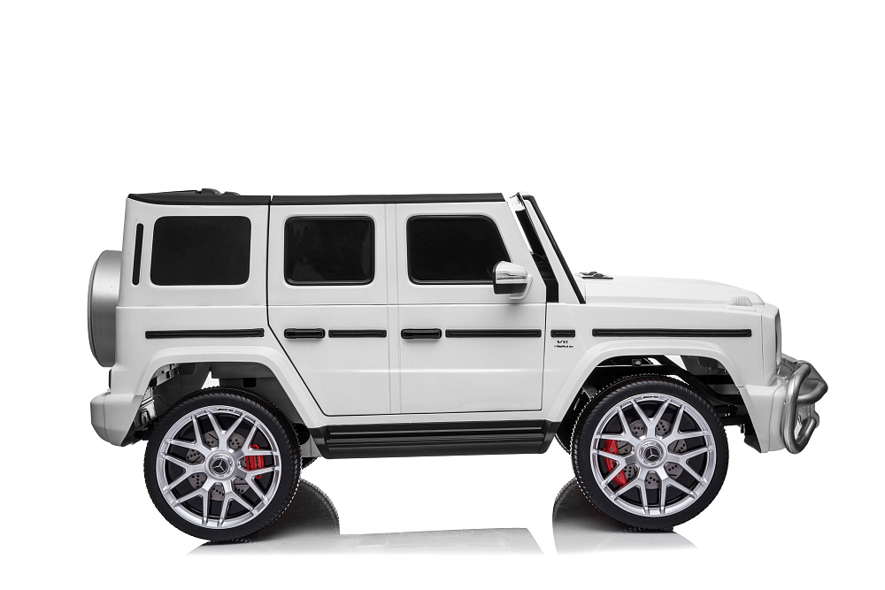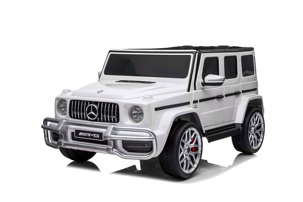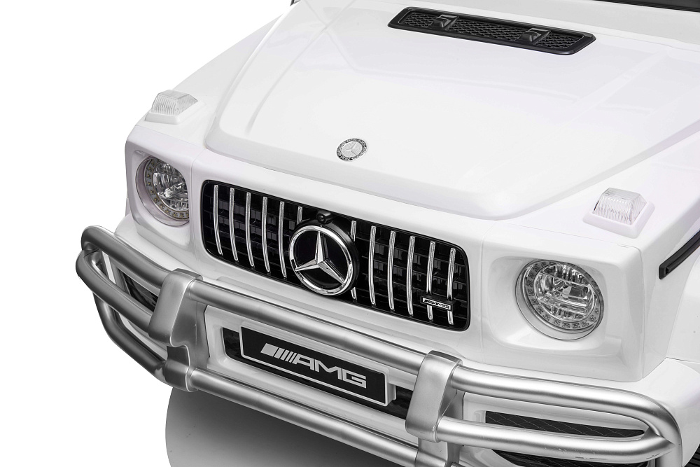 Детский электромобиль Mercedes G63 AMG 4WD 24V - S307-WHITE - это стильный, большой джип Mercedes Benz G63 S307 24V 4x4 обеспечивает комфортное катание по городским и дачным дорогам. Салон оснащён двумя кожаными сиденьями и раздельными ремнями безопасности, которые надёжно зафиксируют юных водителей на креслах. Данная модель отличается улучшенными ходовыми характеристиками: полным приводом с моторами по 50 Ватт, задними амортизаторами, резиновыми колёсами.