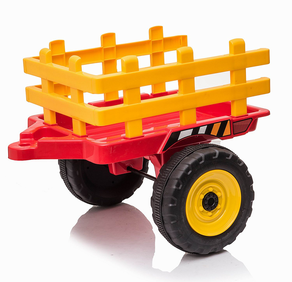В комплект входит достаточно вместительная тележка в цвет корпуса трактора, на которой Ваш малыш сможет перевозить все необходимые вещи.