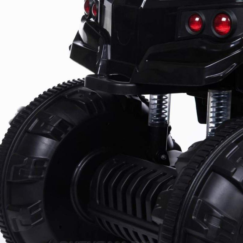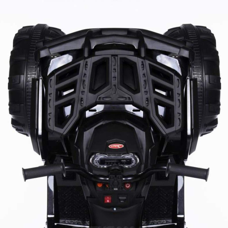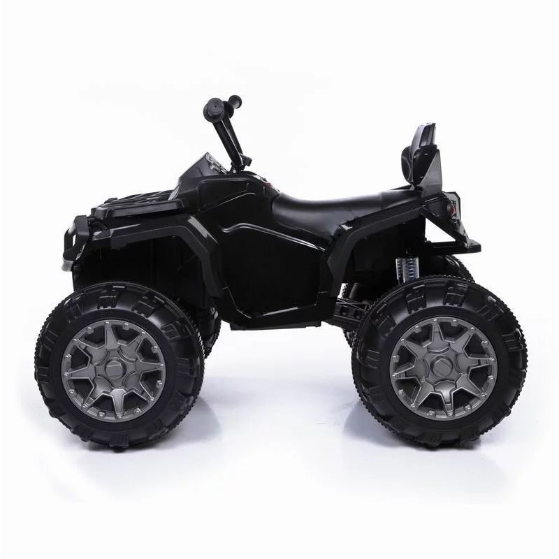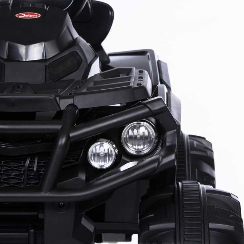 Детский квадроцикл Grizzly ATV Black 12V с пультом управления 2.4G- BDM0906 привлекает внимание не только своим внешним видом, но и отличной комплектацией. Слегка агрессивный, грубый, с классическими элементами дизайн делает эту модель похожей на взрослый квадроцикл, тем самым выделяя его среди прочих. Именно поэтому Grizzly так нравится детям. К тому же, электровездеход имеет самые современные опции. Два мощных мотора позволяют плавно разогнать машину до 7 км/ч. А удобное кожаное сиденье, широкие платформы для ног, "мягкий" руль, прочные резиновые колеса сделают поездку максимально комфортной.Квадроцикл предназначен для детей от 3-х до шести лет, и способен увезти на себе вес до 40 кг. С управлением ребенок разберется быстро: нажатием кнопки запускается двигатель, нажатием педали приводится в движение. Имеются три скорости. Предусмотрены звуковые и световые эффекты: звук мотора, музыкальное сопровождение (радио), возможность подключения MP3, USB, TF card, подсвечивается приборная панель, кнопки, горят фары, фонари. Большим плюсом является наличие специальной ручки сзади машины для удобной транспортировки. Можно не сомневаться, ребенок обязательно оценит красоту и функциональность электроквадроцикла, который будет радовать своего обладателя ни один год.