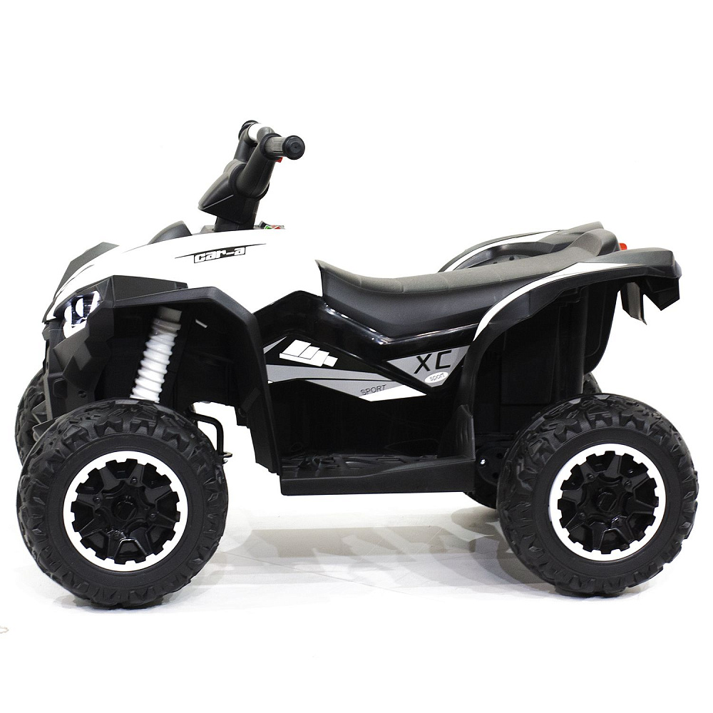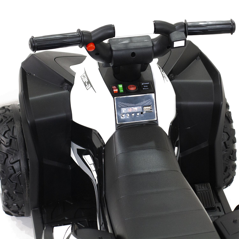 Детский квадроцикл HL Renegade X 2WD EVA 12V - HL578-WHITE привлекает внимание не только своим внешним видом, но и отличной комплектацией. Слегка агрессивный, грубый, с классическими элементами дизайн делает эту модель похожей на взрослый квадроцикл, тем самым выделяя его среди прочих. Именно поэтому данная модель так нравится детям. К тому же, электровездеход имеет самые современные опции. Два мощных мотора позволяют плавно разогнать машину до 5 км/ч. А удобное сиденье, широкие платформы для ног, "мягкий" руль, прочные резиновые колеса сделают поездку максимально комфортной. Квадроцикл предназначен для детей от 2-х до 5 лет, и способен увезти на себе вес до 30 кг. С управлением ребенок разберется быстро: нажатием кнопки запускается двигатель, нажатием педали приводится в движение. Имеются две скорости движения. Предусмотрены звуковые и световые эффекты: звук мотора, музыкальное сопровождение, FM радио, подключение устройств через Bluetooth, возможность подключения MP3, USB, TF card, горят передние фары. Можно не сомневаться, ребенок обязательно оценит красоту и функциональность электроквадроцикла, который будет радовать своего обладателя ни один год. В комплекте есть дистанционный пульт управления.