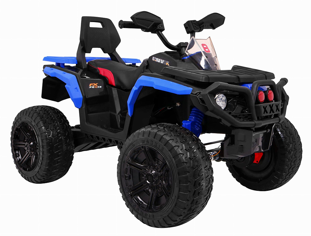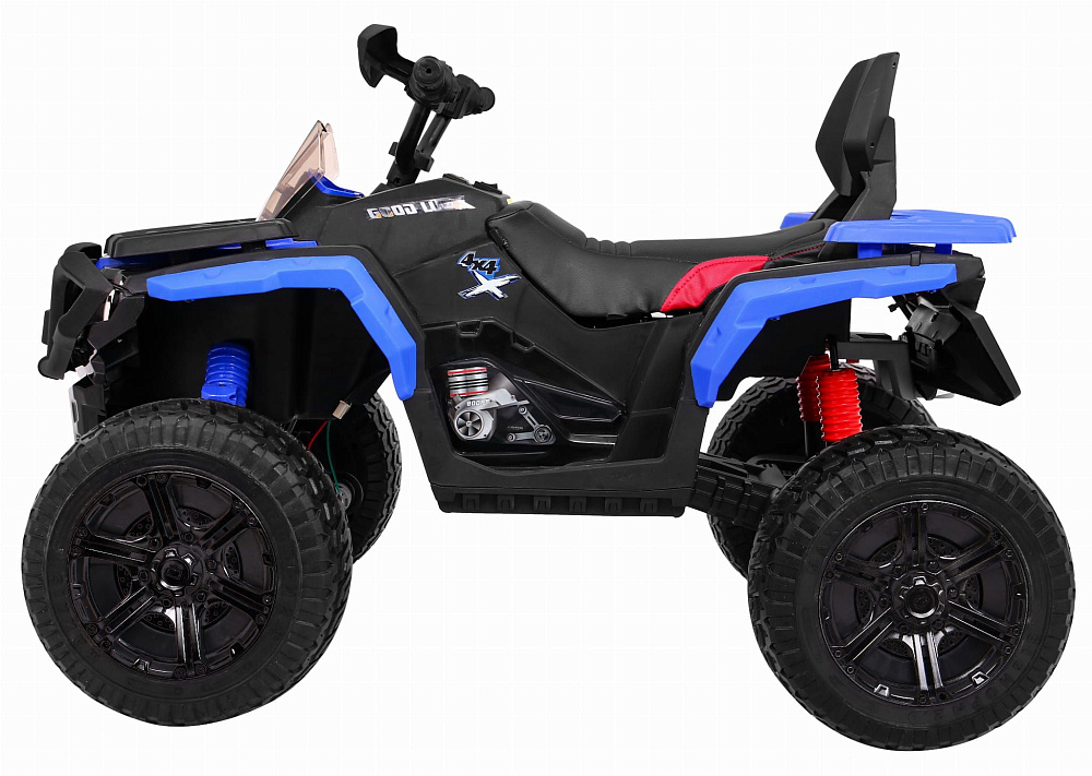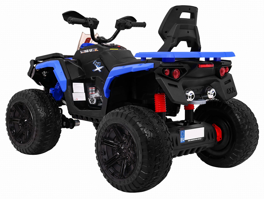 Детский квадроцикл Maverick ATV 12V 4WD - BBH-3588-4-BLUE привлекает внимание не только своим внешним видом, но и отличной комплектацией. Слегка агрессивный, грубый, с классическими элементами дизайн делает эту модель похожей на взрослый квадроцикл, тем самым выделяя его среди прочих. Именно поэтому квадроцикл Maverick так нравится детям. К тому же, электровездеход имеет самые современные опции. Четыре мощных мотора позволяют плавно разогнать машину до 7 км/ч. А удобное кожаное сиденье, широкие платформы для ног, "мягкий" руль, прочные резиновые колеса сделают поездку максимально комфортной. Квадроцикл предназначен для детей от 3-х до шести лет, и способен увезти на себе вес до 30 кг. С управлением ребенок разберется быстро: нажатием кнопки запускается двигатель, поворотной ручкой газа, вы можете еще более точно дозировать мощность, нажатием педали тормоза быстро остановить квадроцикл. Предусмотрены звуковые и световые эффекты: звук мотора, музыкальное сопровождение (радио), возможность подключения MP3, USB, TF card, подсвечивается приборная панель, кнопки, горят фары, фонари. Большим плюсом является наличие специальной ручки сзади машины для удобной транспортировки. Можно не сомневаться, ребенок обязательно оценит красоту и функциональность электроквадроцикла, который будет радовать своего обладателя ни один год.