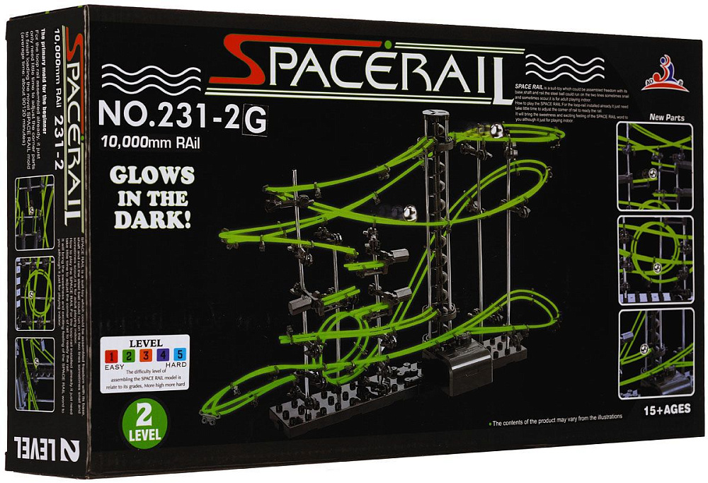Динамический конструктор Космические горки, светящиеся рельсы, уровень 2 - 231-2G - это конструктор "Space Rail Glow In The Dark" представляет собой отличную пространственную головоломку, которая увлечет всю семью от мала до велика! Процесс сборки доставит удовольствие и детям, и родителям, а запуск космической трассы приведет всех в восторг. Вы сможете построить захватывающие дороги общей длиной до 10 метров и сами задать траектории, по которым стремительно будут проноситься металлические шарики. Удивительной особенностью конструкции является то, что рельсовое полотно светится в темноте мягким зеленым светом, делая модель еще более эффектной. Это интереснейший аттракцион, напоминающий "американские горки", за которым можно наблюдать часами. Комплект включает элементы для сборки модели, 2 металлических шарика и схематичную инструкцию, которая позволит собрать конструкцию правильно и быстро.