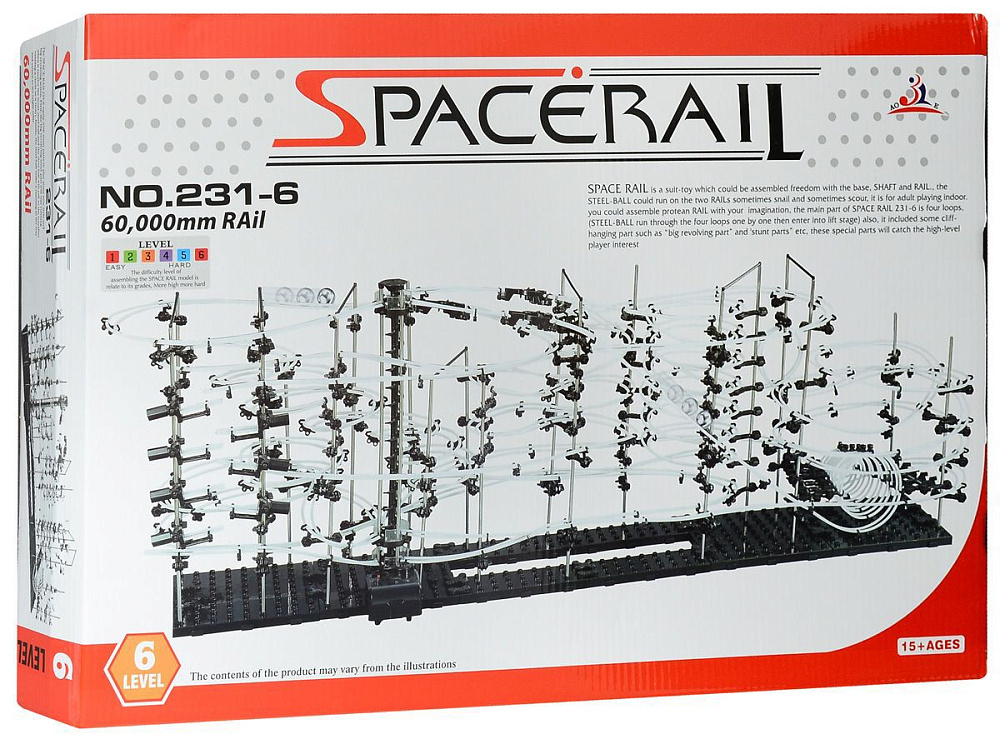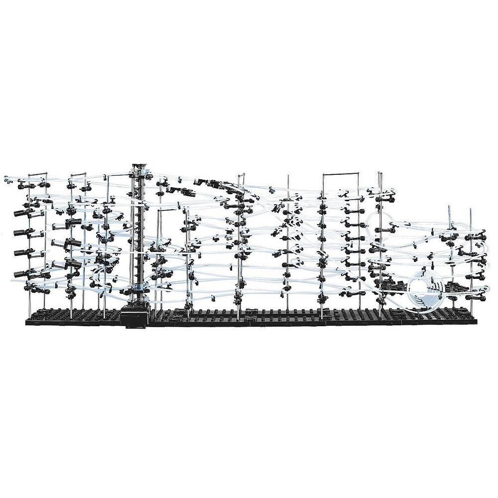 В чем смысл? Из идущих в комплекте запчастей нужно собрать хитрую конструкцию, по которой будут носится металлические шарики. Количество запчастей, шариков, длина рельс, сложность отдельных элементов зависит от уровня конструктора. Вы можете собрать конструкцию по инструкции, либо придумать свою, ограничений только два - это ваша фантазия и количество запчастей. Наборы полностью совместимы, имея в наличии разные уровни можно их объединить и собрать что-нибудь очень большое.