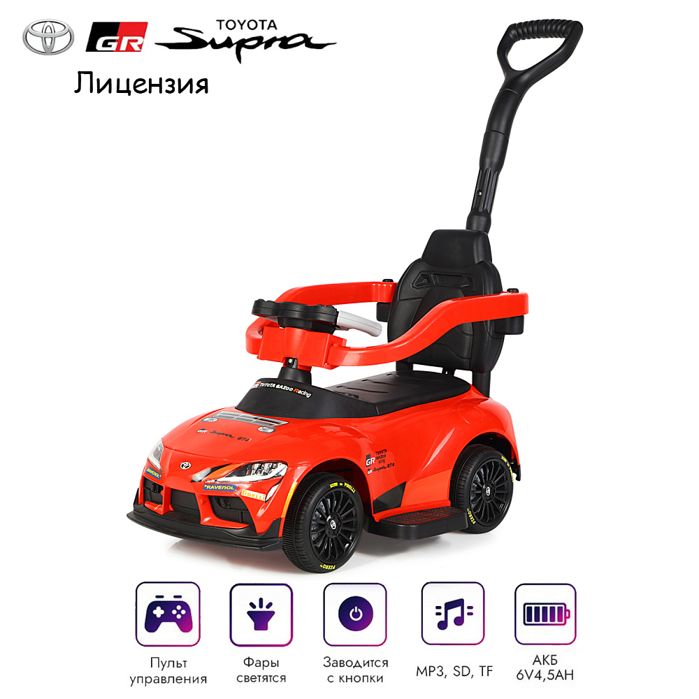 Электромобиль каталка 3in1 Toyota GR SUPRA GT4 (6V, EVA, ручка, пульт) - SMT-519B-RED