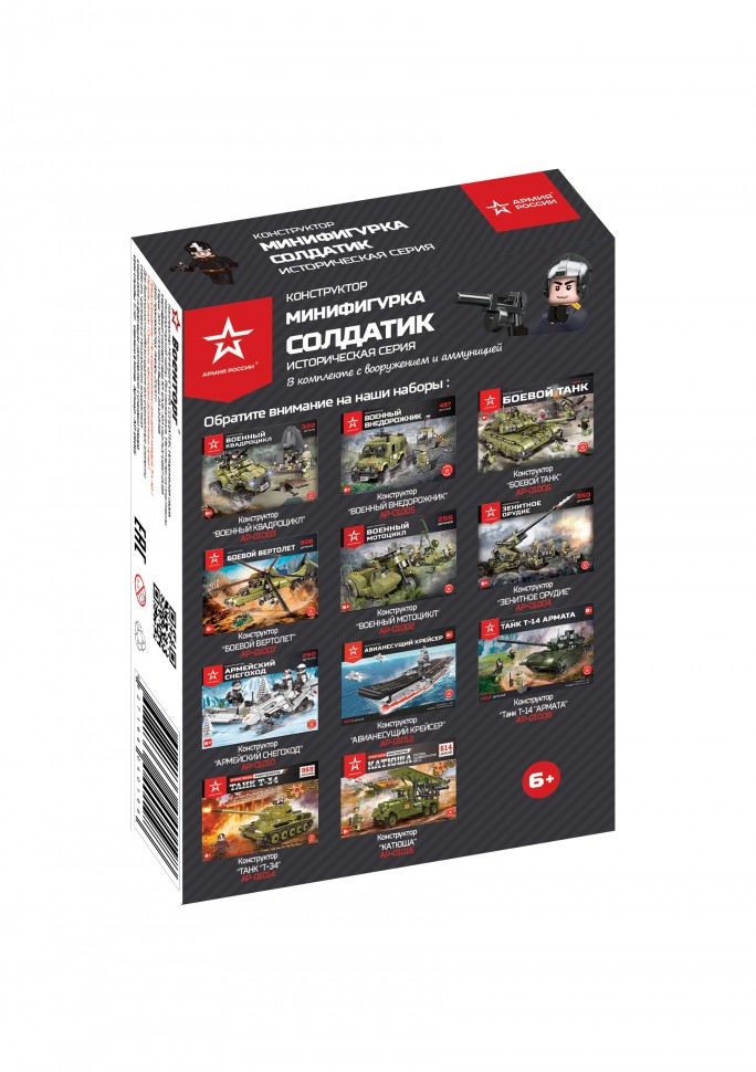 Конструктор Армия России - Минифигурка Солдатик - Историческая серия - АР-01015. В упаковке находится одна из фигурок, указанных на обложке. Вы не знаете, какая фигурка внутри. Ваш выбор случаен. В коробке находится 1 из 4 солдатиков времен Великой Отечественной войны. Состав отличается в зависимости от типа фигурки. Внимание ! Содержит мелкие детали. Опасность удушения. Не рекомендуется для детей младше 3-х лет.