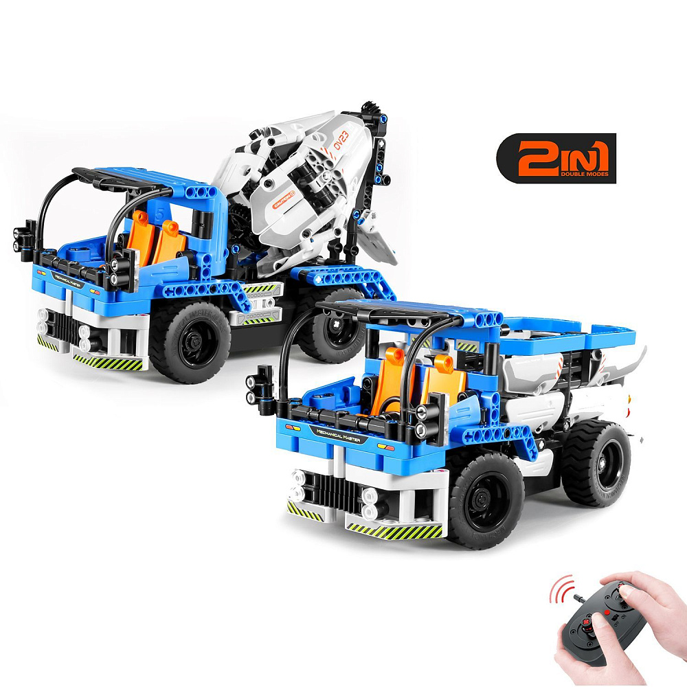 Конструктор грузовик QiHui 394 детали (2в1 бетономешалка и самосвал, пульт) - QH8023