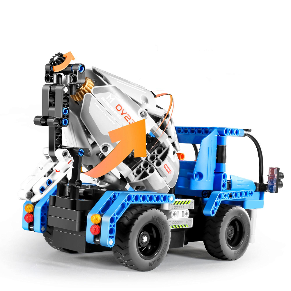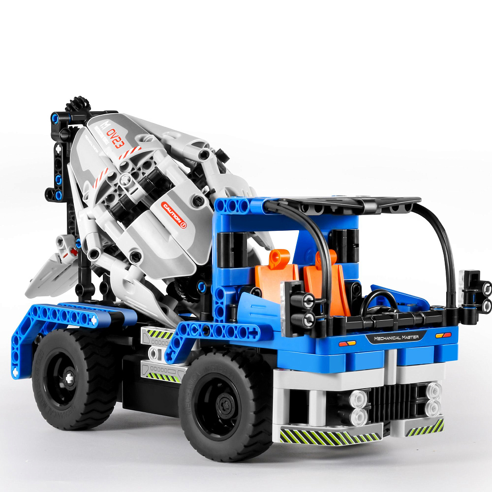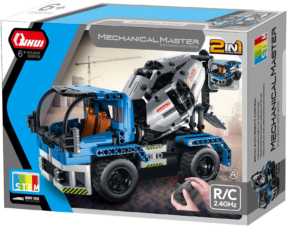 Конструктор грузовик QiHui 394 детали (2в1 бетономешалка и самосвал, пульт) - QH8023 позволяет сделать две модели: самосвал и бетономешалку. Все детали сделаны из высокопрочного пластика, окрашены в приятные синие, черные и белые тона. Для его сборки не нужны какие-либо дополнительные инструменты. Конструктор работает от 3-х батареек типа АА и 3-х батареек типа ААА для пульта (не входят в комплект). С помощью пульта машинка может двигаться вперед-назад и влево-вправо.