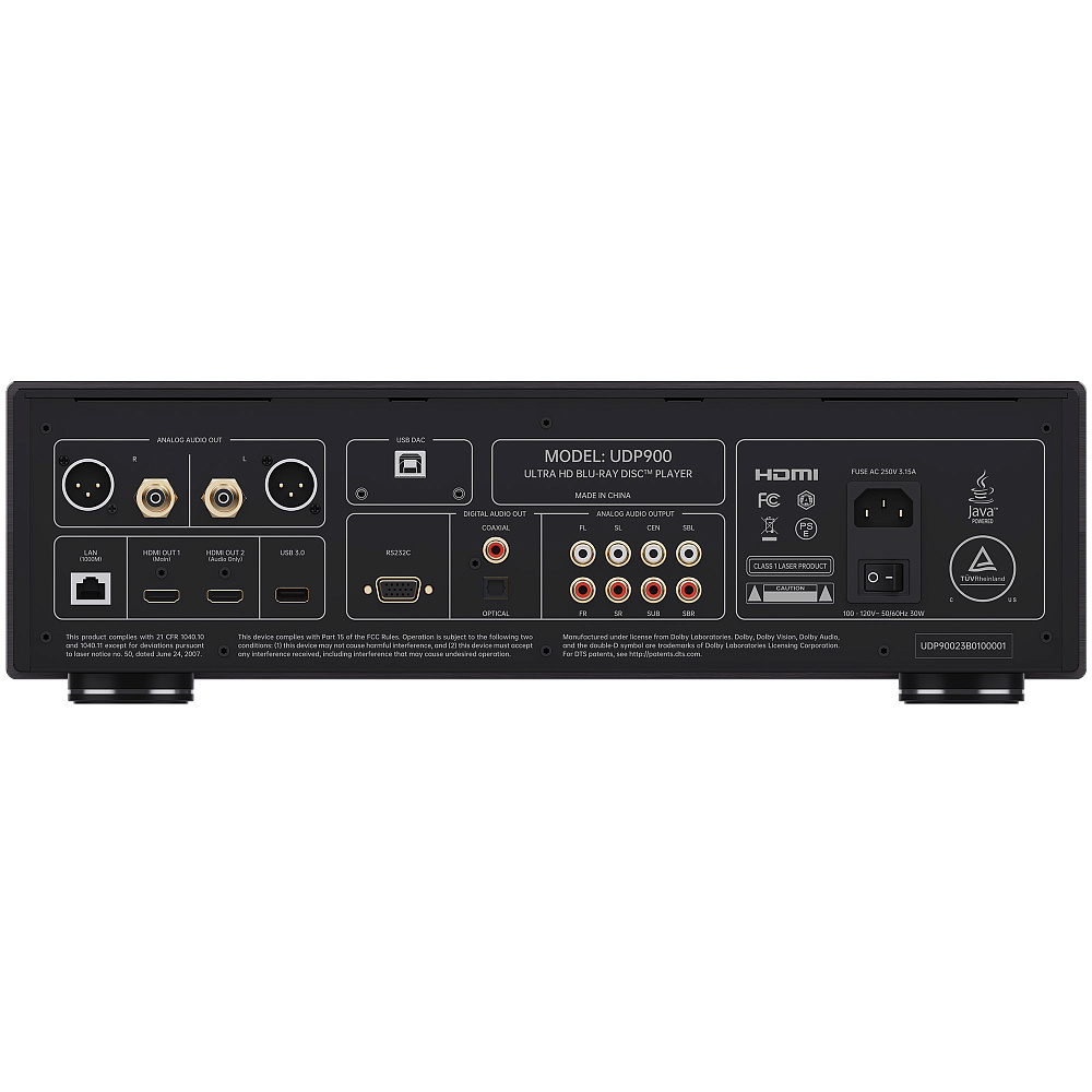 4K UHD Blu-ray проигрыватель UDP900 — полноразмерный медиаплеер на базе четырехъядерного процессора Media Tek MT8581 — предлагает передовые технологии декодирования и обработки видеосигнала с поддержкой 4K Ultra HD и HDR, включая Dolby Vision и HDR10+, и обеспечивает очень четкую и резкую картинку с насыщенными цветами. Обе звуковые платы имеют 4-слойную конструкцию, каждый канал с независимой разводкой. Высокоточный кварцевый генератор (TCXO) с температурной компенсацией и сверхнизким фазовым шумом. Конденсаторы, NCC, Red WIMA, и ELNA SILMIC II. Два независимых мощных источника питания. Балансные выходные разъемы XLR и позолоченные RCA обеспечивает высокое качество звука.