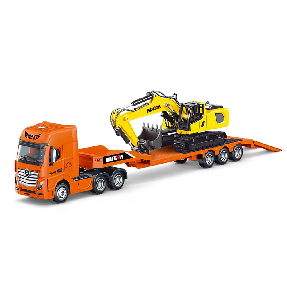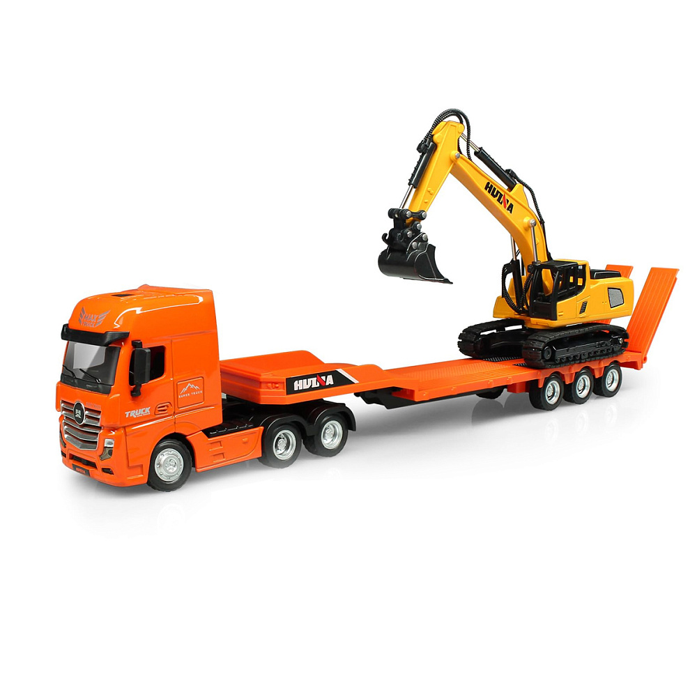 Металлический грузовик трейлер с экскаватором HUINA 1:50 - HN1729-ORANGE