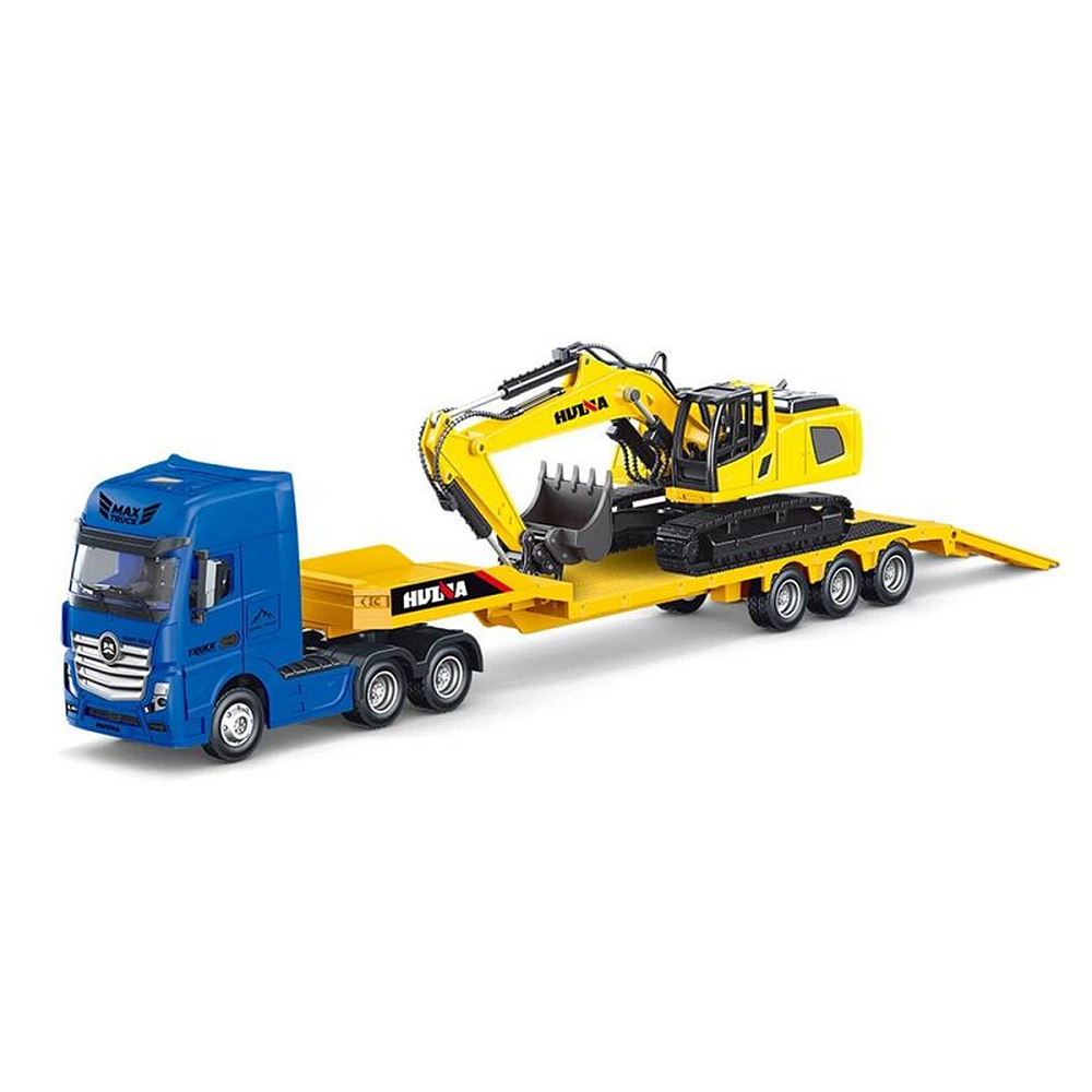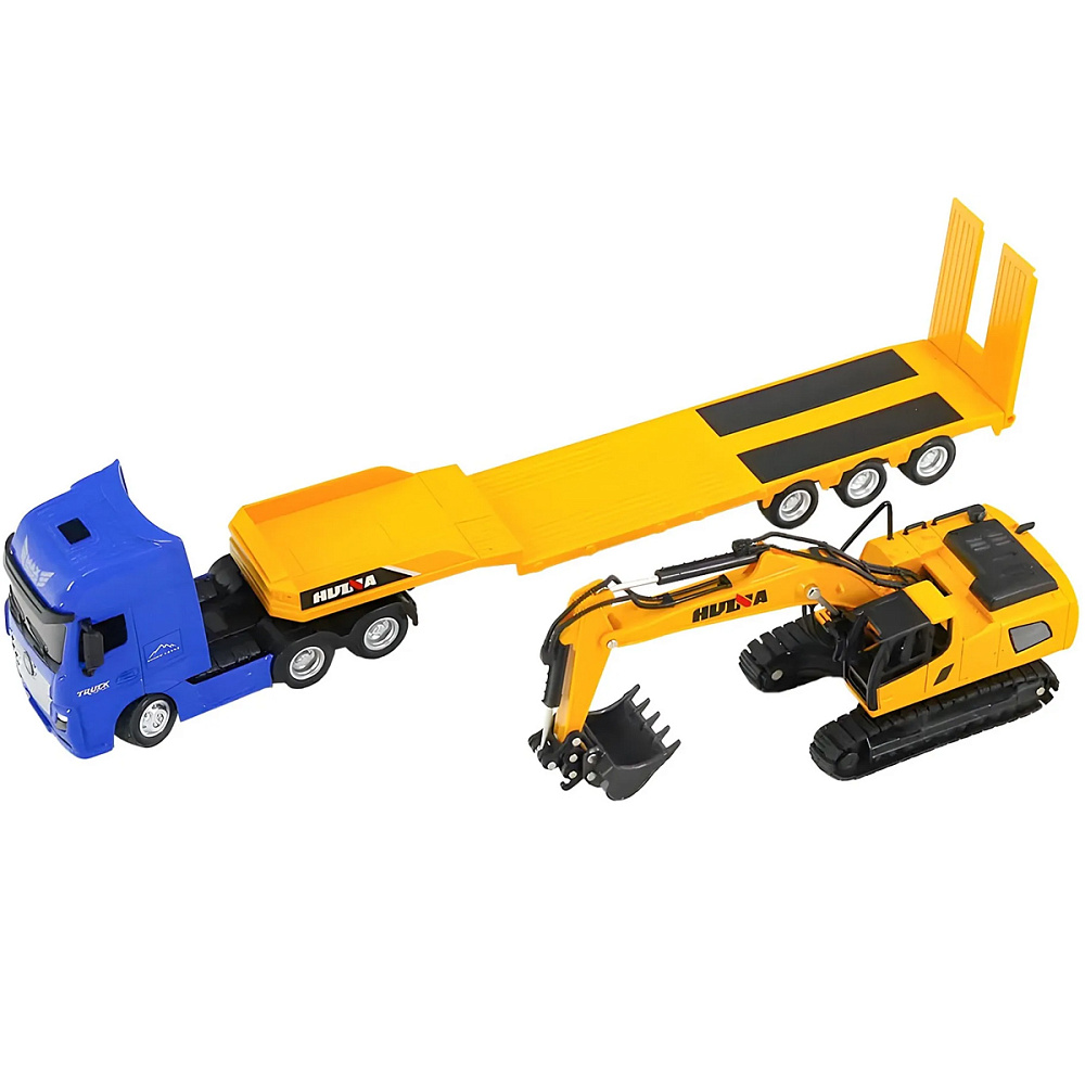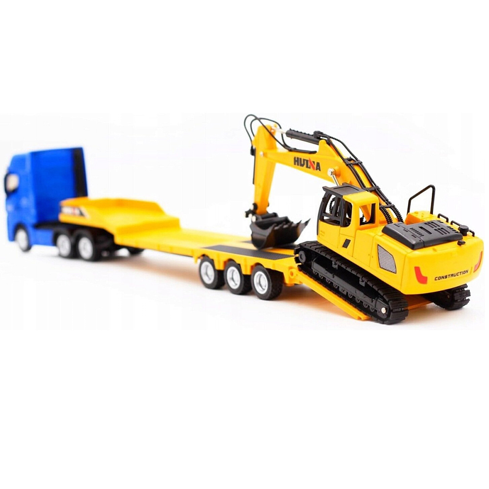 Металлический грузовик трейлер с экскаватором HUINA 1:50 - HN1729-YELLOW