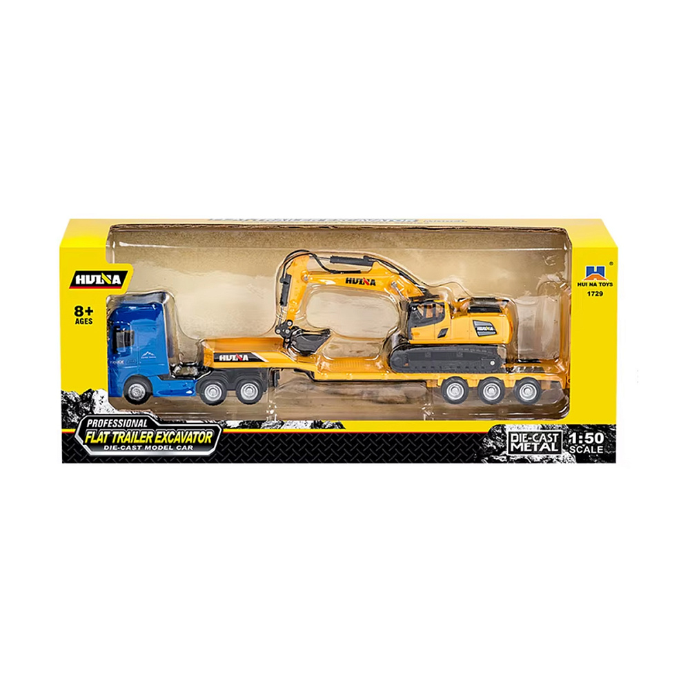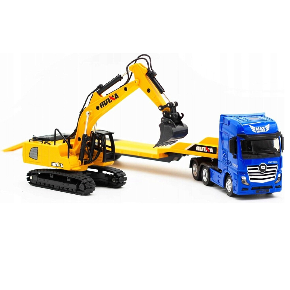 Металлический грузовик трейлер с экскаватором HUINA 1:50 - HN1729-YELLOW - это набор в состав которого входит металлическая модель трейлера и экскаватора с ковшом, которая станет отличным дополнением в коллекцию уменьшенных копий спецтехники, как юного, так и взрослого автолюбителя. Модели выполнены в масштабе 1:50 с высокой точностью передачи оригинальных пропорций и особенностей дизайна. Цветовая гамма контрастных цветов привлекает к себе внимание. Через прозрачные окошки можно разглядеть кабину водителя, а вращающиеся части добавят интерактивности в игру. Приобретая другую технику этой линейки, можно собрать целую стройку!