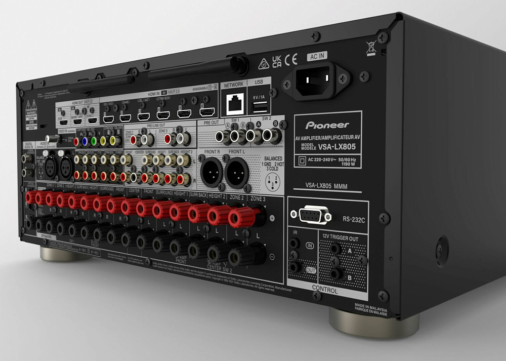 Pioneer LX VSA-LX805 спроектирован для поддержки 11 каналов с усилением в конфигурации 7.2.4 по 150 Вт на канал (8 Ом). Проще говоря, это большая мощность для подобных решений.