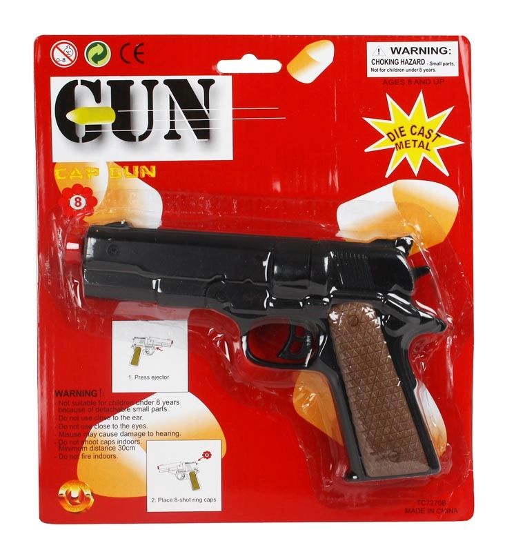 Пистолет металлический на 8 пистонов, длина 18 см - TC7270B - это восьмизарядный пистолет на пистонах с металлическим корпусом и барабаном (цилиндром). Длина 18 см. Реалистичное оружие обязательно будет любимым в арсенале юного бойца. Пистолет стреляет пистонами, для этого необходимы 8-и зарядные пистоны в форме кольца. При выстреле раздается хлопок и легкий дымовой эффект. Высокое качество. Реалистичное оружие тщательно продумано, оно обеспечит максимальную безопасность детей во время игры.