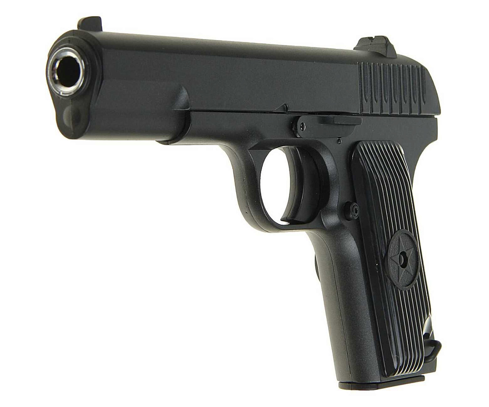 Пистолет металлический (пневматика, 20,5 см) - G.33 - это качественная спринговая страйкбольная модель классического пистолета , изготовленная из качественного цинкового сплава и пластика. Цвет черный. Начальная скорость выстрела шарика 50-59 метров в секунду.