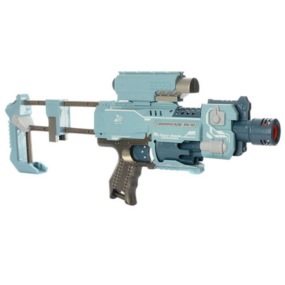 Пистолет с мягкими пулями и фонариком на батарейках "BlazeStorm" - ZC7083 - это бластер Indigo Blaze Storm может понравиться мальчикам своим необычным интересным дизайном и возможностью "стрелять" из него. Бластер напоминает космическое оружие, и с ним можно смело защищать планету от монстров. Для меткой стрельбы детское оружие снабжено съемным прицелом с подсветкой.