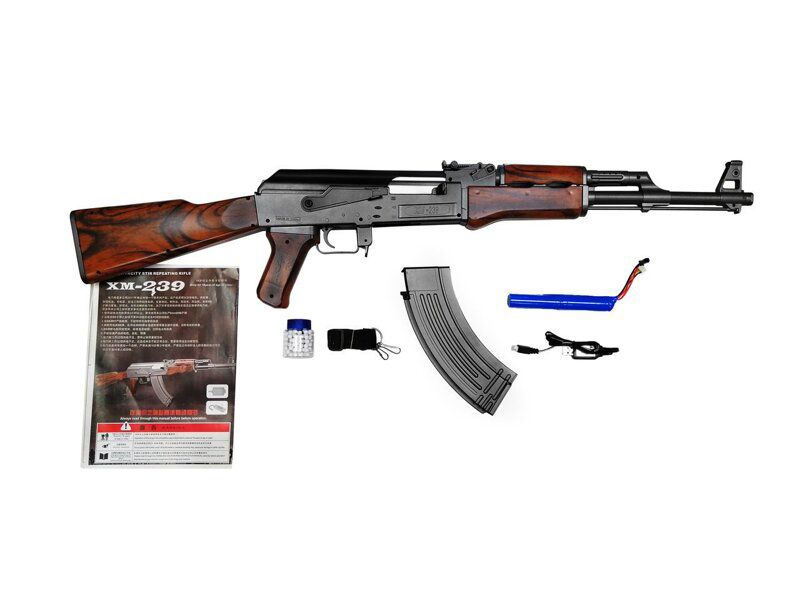 Пневматический автомат АК-47 на аккумуляторе (певматика, 87см) - XM-23 является полномасштабной копией легендарного советского оружия.Это идеальный вариант для начинающего страйкболиста – технические характеристики на высоте, подобие настоящего оружия придает игре больший интерес, обращаться с ним удобно за счет простой в применении конструкции и легкого веса. Преимуществом данной модели является аккумулятор емкостью 700 mAh, один из самых энергоемких, если речь идет о репликах оружия из пластиковых материалов. В комплекте с автоматом "юный боец" также обнаружит 100 пулек и ремень.
