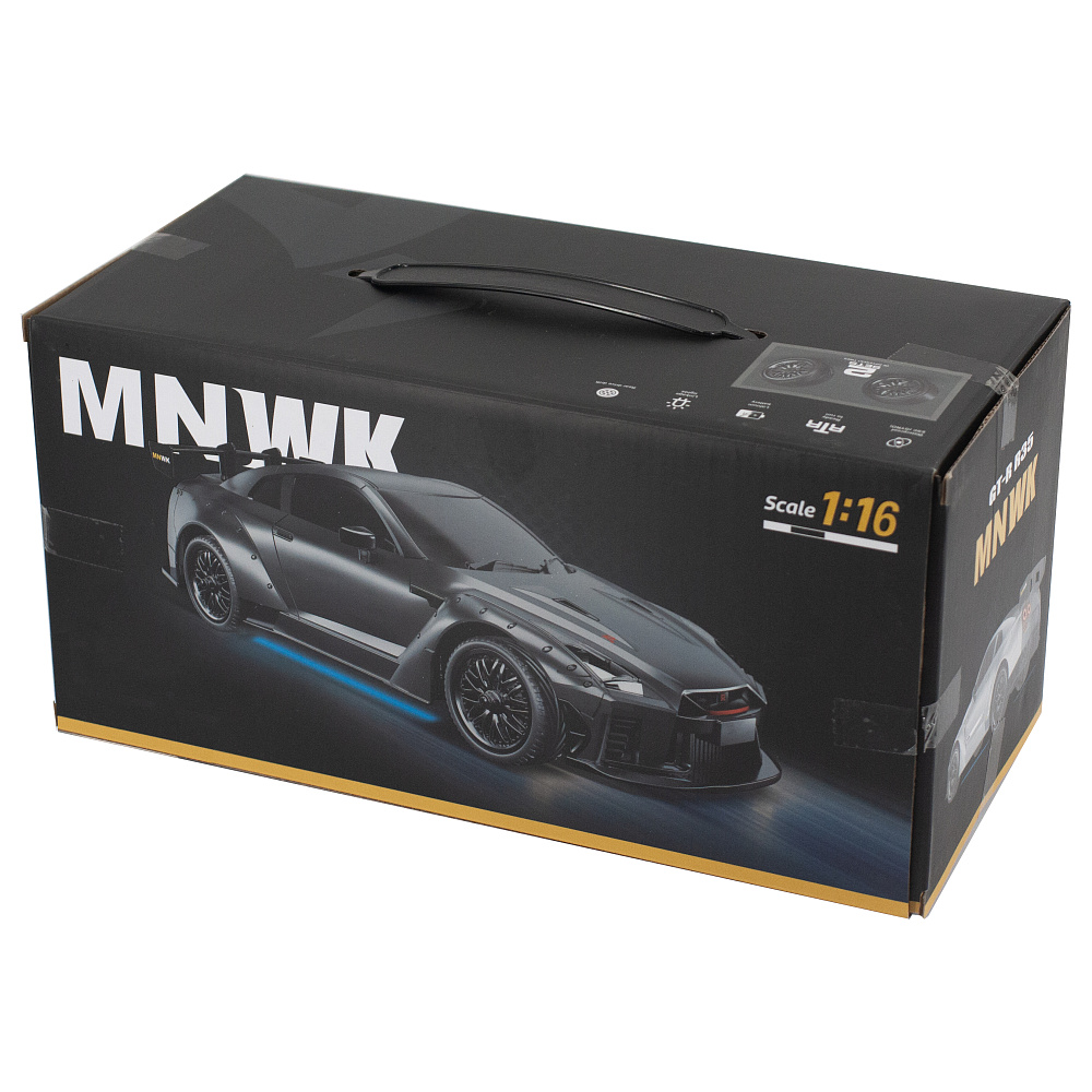 Радиоуправляемая машина для дрифта Nissan GTR (31 см, 20 км/ч, акб, 1:16) - MN-268-BLACK - это спортивный автомобиль для дрифта с классическим задним приводом в масштабе 1:16, который поставляется в полностью готовом к использованию виде. Модель работает от электрического двигателя и развивает скорость около 20 км/ч. Вспомогательный гироскоп для обеспечения высокой стабильности при дрифте. В комплекте есть все, что нужно для первого заезда.