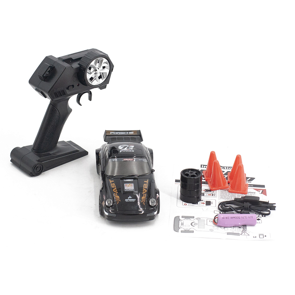 Радиоуправляемая машина для дрифта Porsche 911 GT RS 4WD 1:24 - 757-4WD33C - это машина, которая предназначена для дрифта. Она имеет полный привод и выполненная в масштабе 1:24. Машинка управляется при помощи пульта ДУ, работающего на частоте 2,4 ГГц. В наборе также поставляются комплект запасных колес, дорожные конусы, зарядное устройство и аккумулятор. Во время движения у машинки светятся фары.