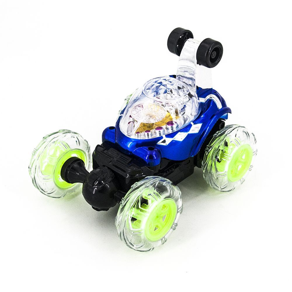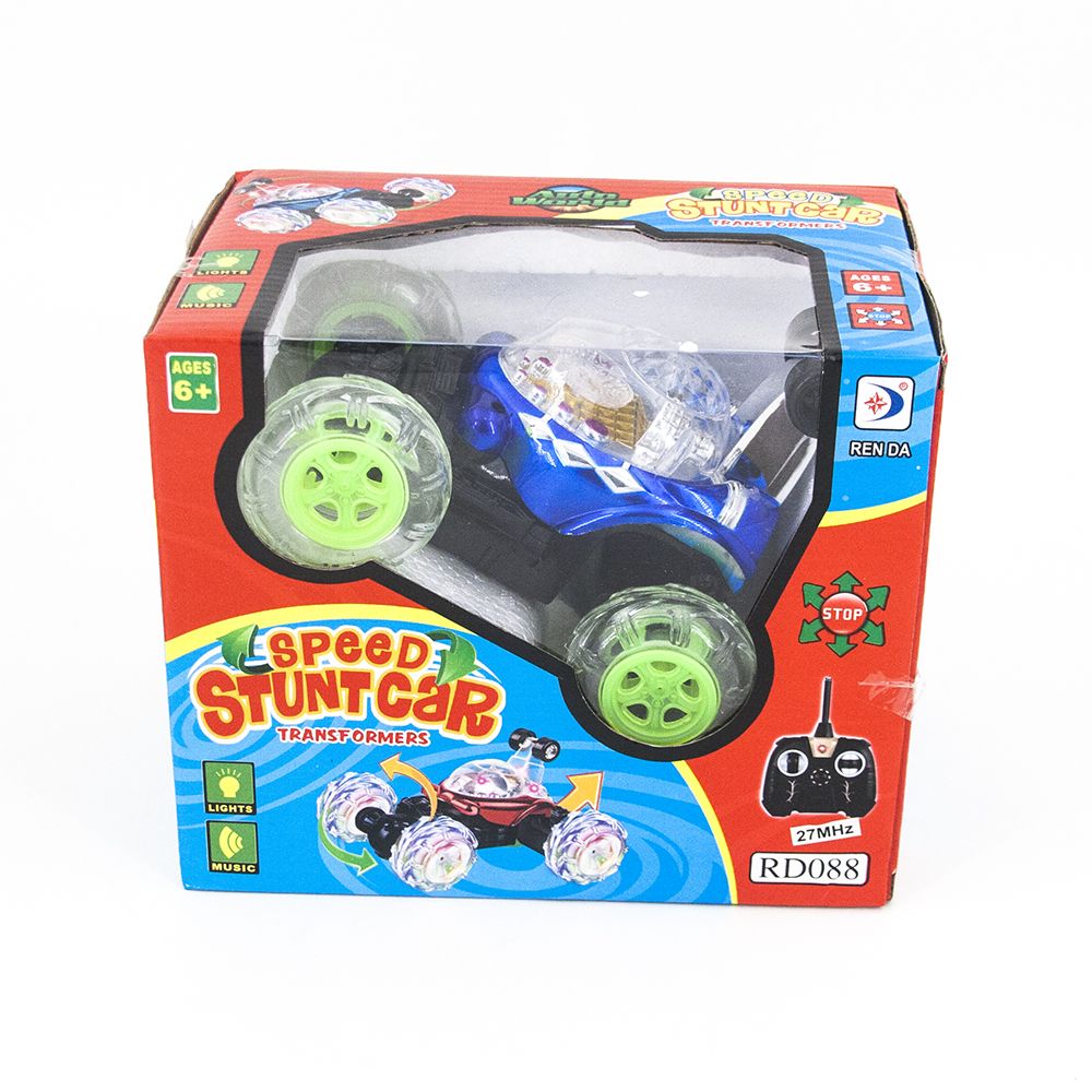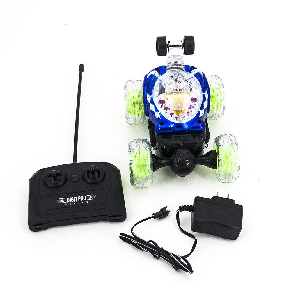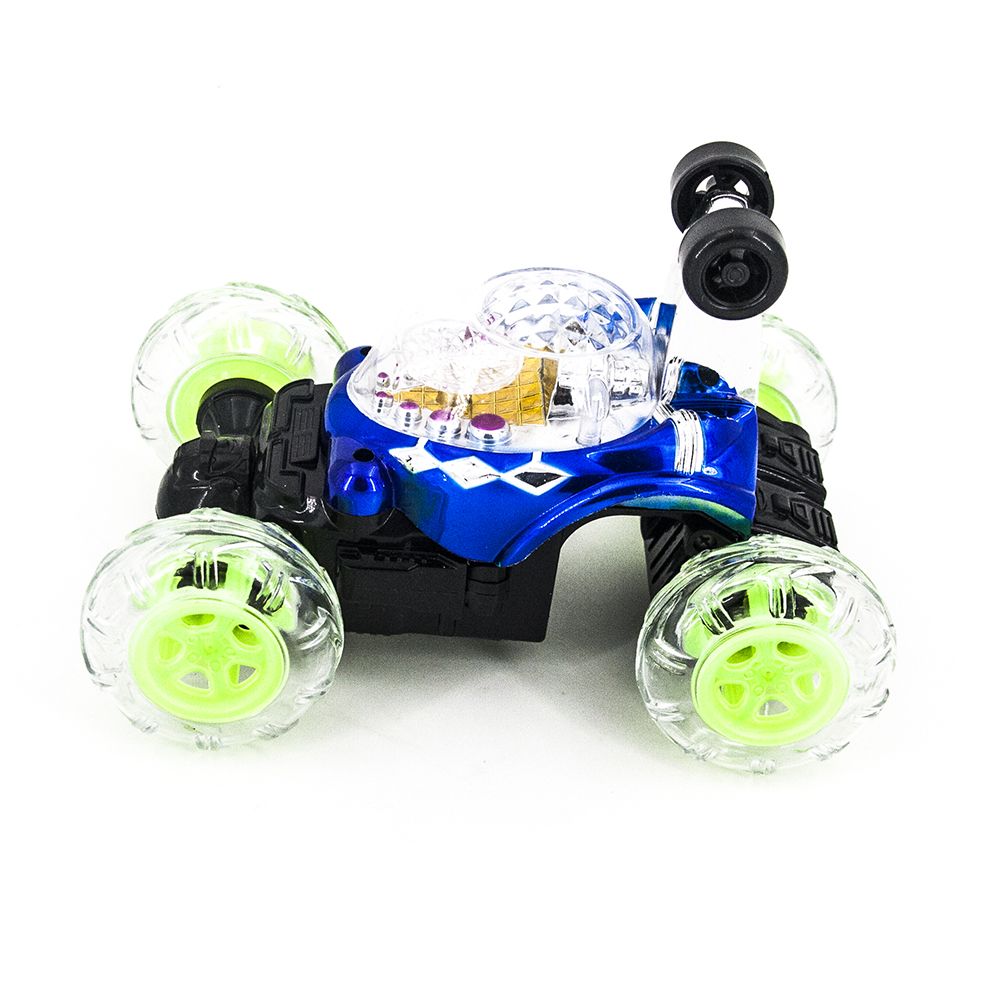 Радиоуправляемая трюковая синяя машинка-перевертыш - RD088-B - это машинка перевертыш с радиоуправлением и световыми эффектами, которая изготовлена из лёгкого материла высокой прочности. Шины сделаны из рифлёного силикона, что придаёт ей большую устойчивость. Машина полностью радиоуправляема, имеет батарею с возможностью подзарядки. Данная модель включает в себя светодиодную подсветку в прозрачном корпусе, которая придаёт ей ослепительную красоту. Также она оснащена музыкальным сопровождением, приятным на слух. При необходимости отключается. В целом автомобиль создаёт необычную атмосферу при управлении. Машина может выделывать невообразимые вещи, завлекая на несколько часов игрового процесса. Понравится всем, от мала до велика! С управлением справится любой, инструкция просто не требуется. Включи и езжай!
