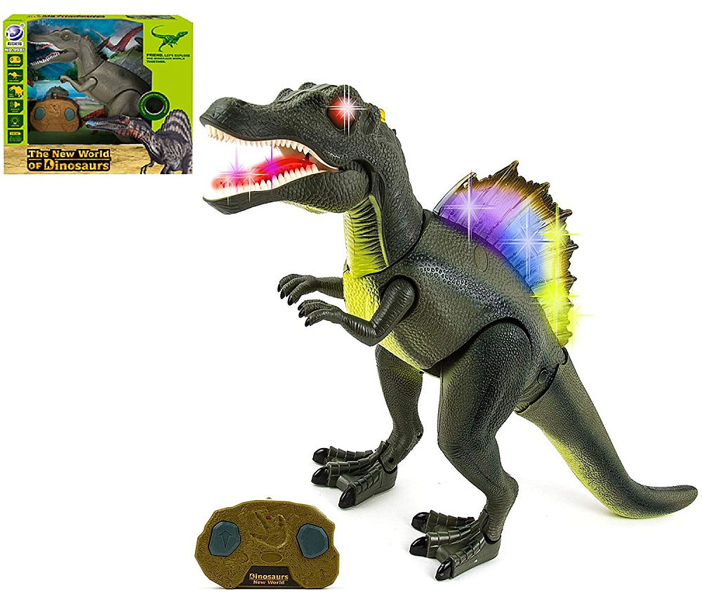 Радиоуправляемый динозавр - Спинозавр (31 см, зеленый, свет, звук) - RUI-9986-GREEN - это оригинальная игрушка, которая обязательно понравится малышу, увлеченному эпохой динозавров. Этот игрушечный зверь может передвигаться вперед и назад, исследовать окружающую его обстановку. Он также широко открывает пасть, грозно рычит, отпугивая врагов.