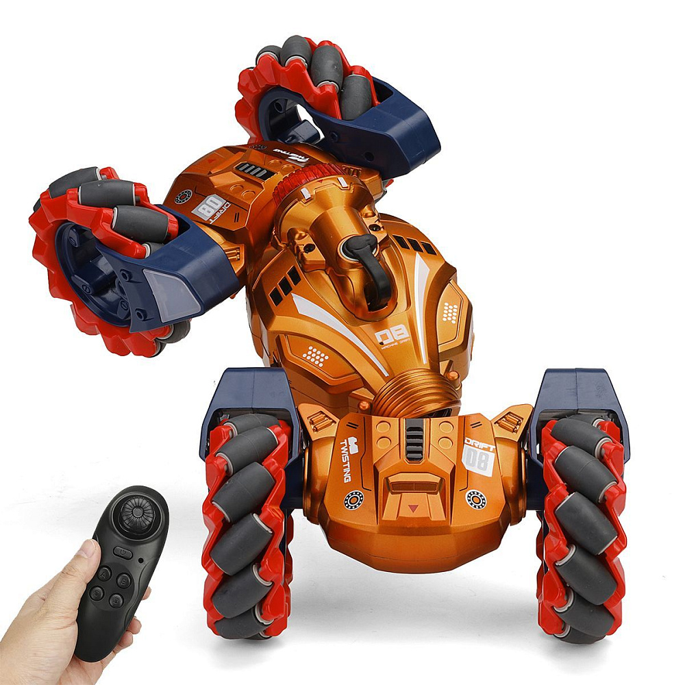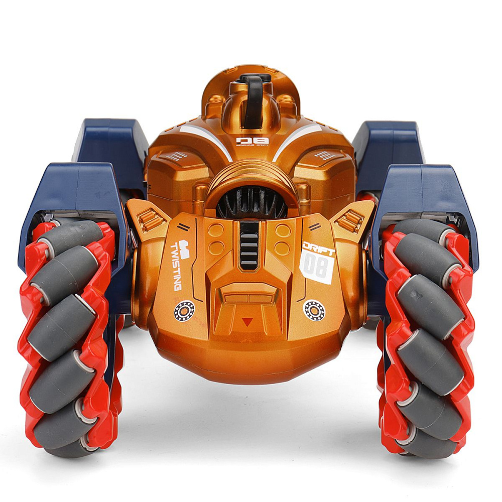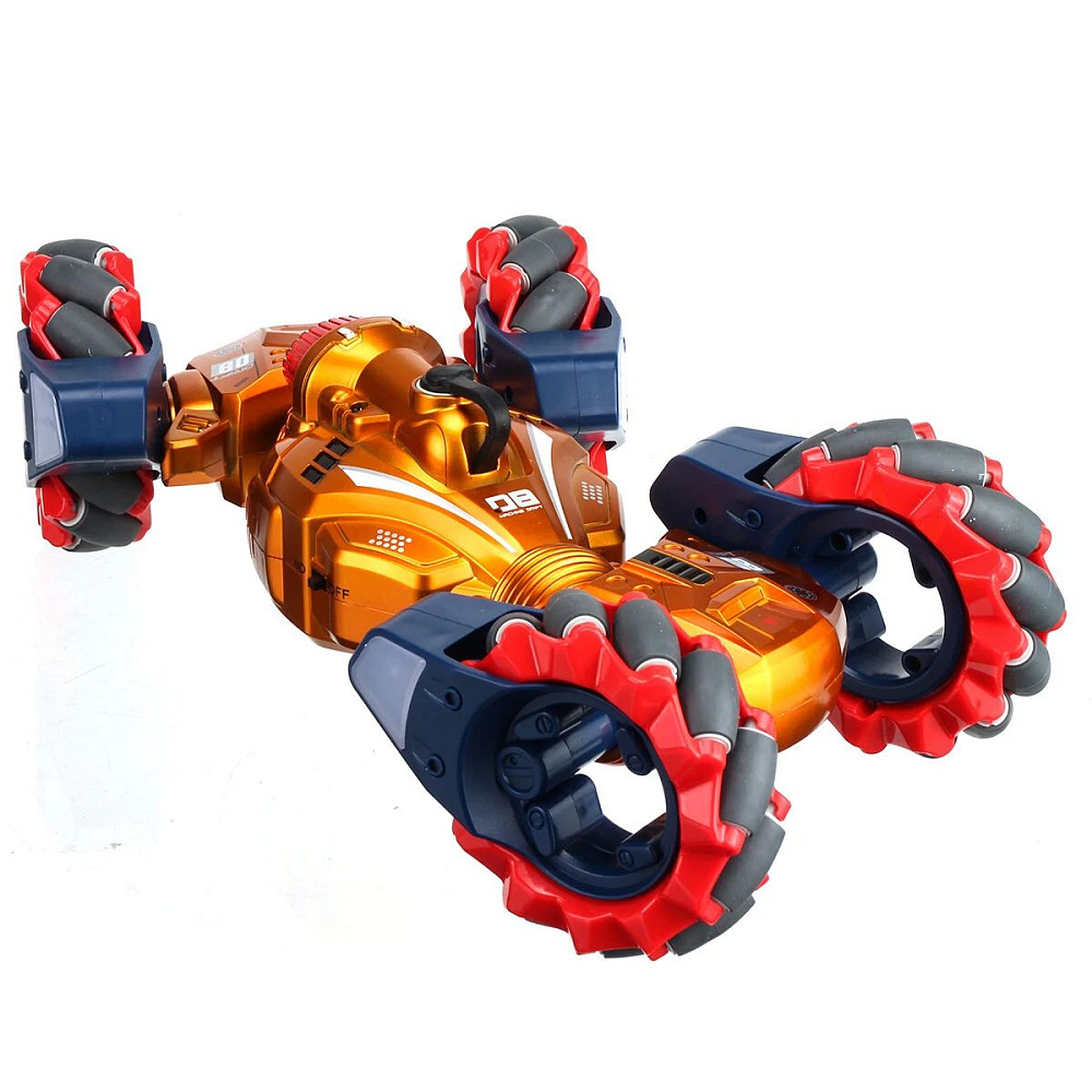 Радиоуправляемый дрифт Твистер Yearoo (гиропульт, пар) 1:12 - 99008-1-GOLD - это машинка перевертыш дрифт Твистер, которая является несомненным хитом продаж среди радиоуправляемых моделей. Обновленная версия стала еще лучше. О такой машинке мечтает каждый мальчик. Возможности машинки просто невероятны. Она может ездить, крутиться на месте, и даже пускать пар! Но главная особенность заключается в управлении и уникальных колесах с яркой светодиодной подсветкой. Данной машинкой можно управлять при помощи специального пульта, который входит в комплект с машинкой. Увлекательный процесс управления понравится не только детям, но и взрослым. И все это будет сопровождаться звуками работающего мотора, яркой подсветкой колес, паром и песнями. Особенно эффектно машинка смотрится в темноте.